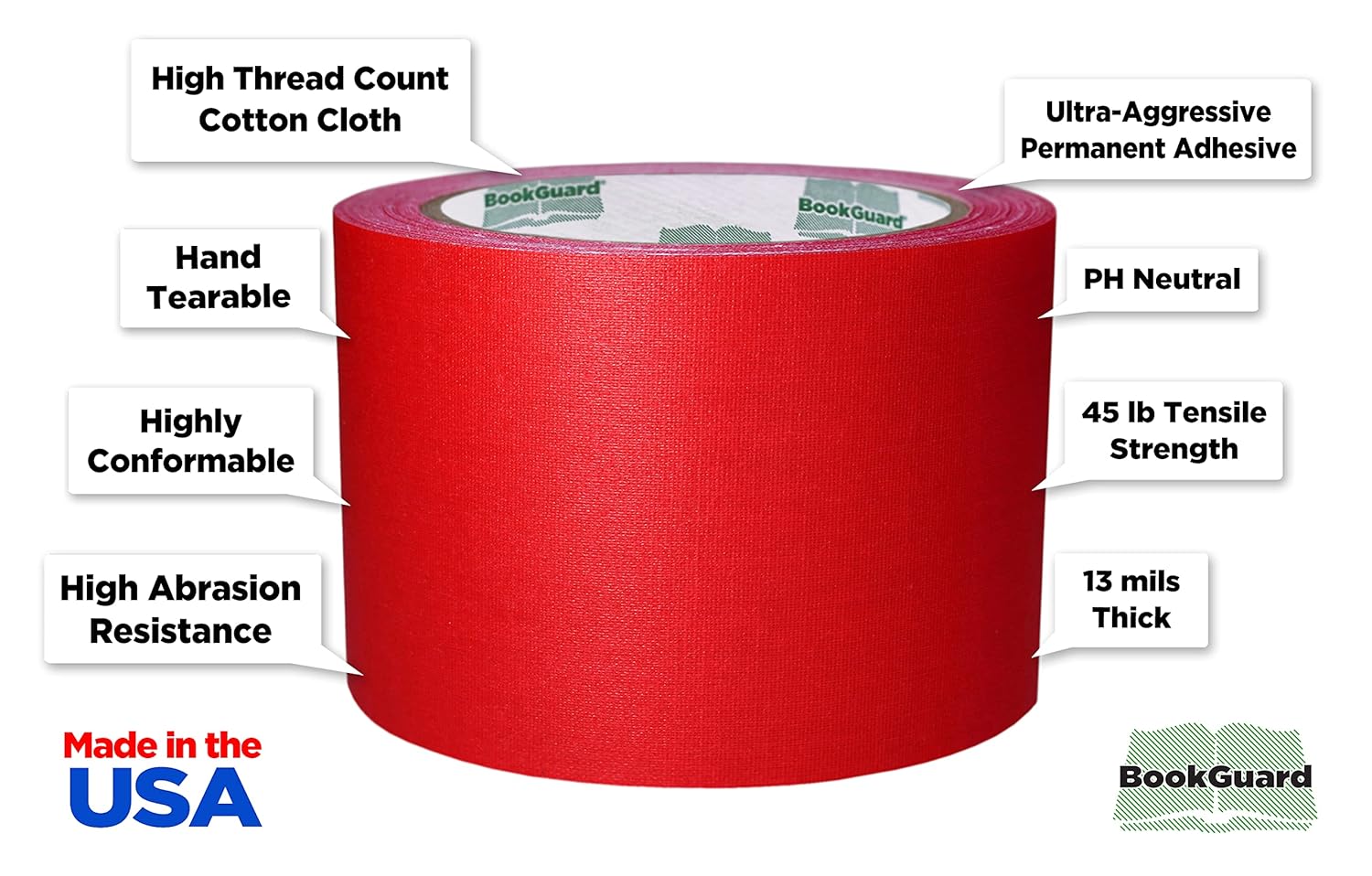 BookGuard 3 inch Premium Bookbinding Repair Cloth Tape, 15 Yard Roll, Red