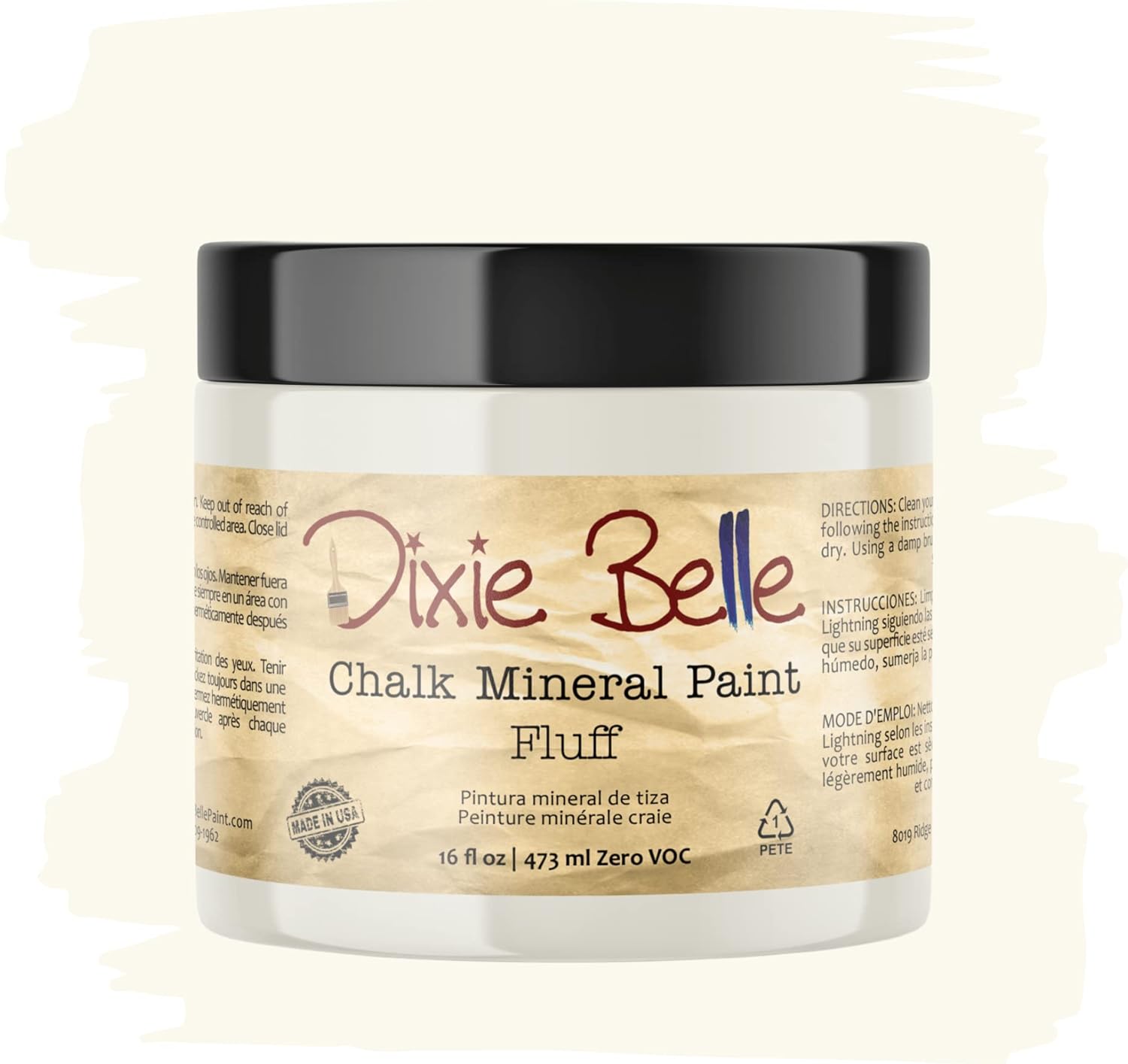 Dixie Belle Paint Company Chalk Finish Furniture Paint - Fluff (16oz) - Matte Soft White Chic Chalk Mineral DIY Furniture Paint