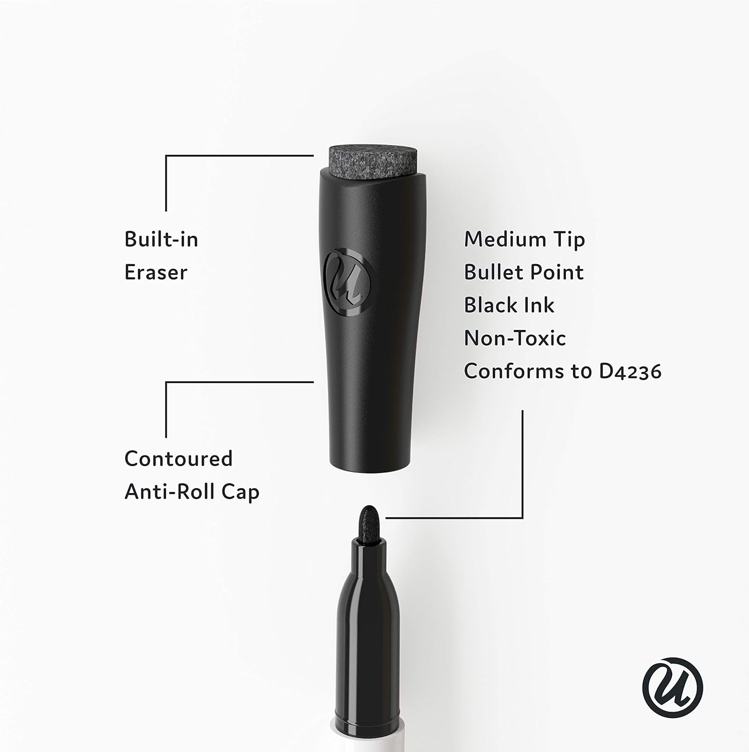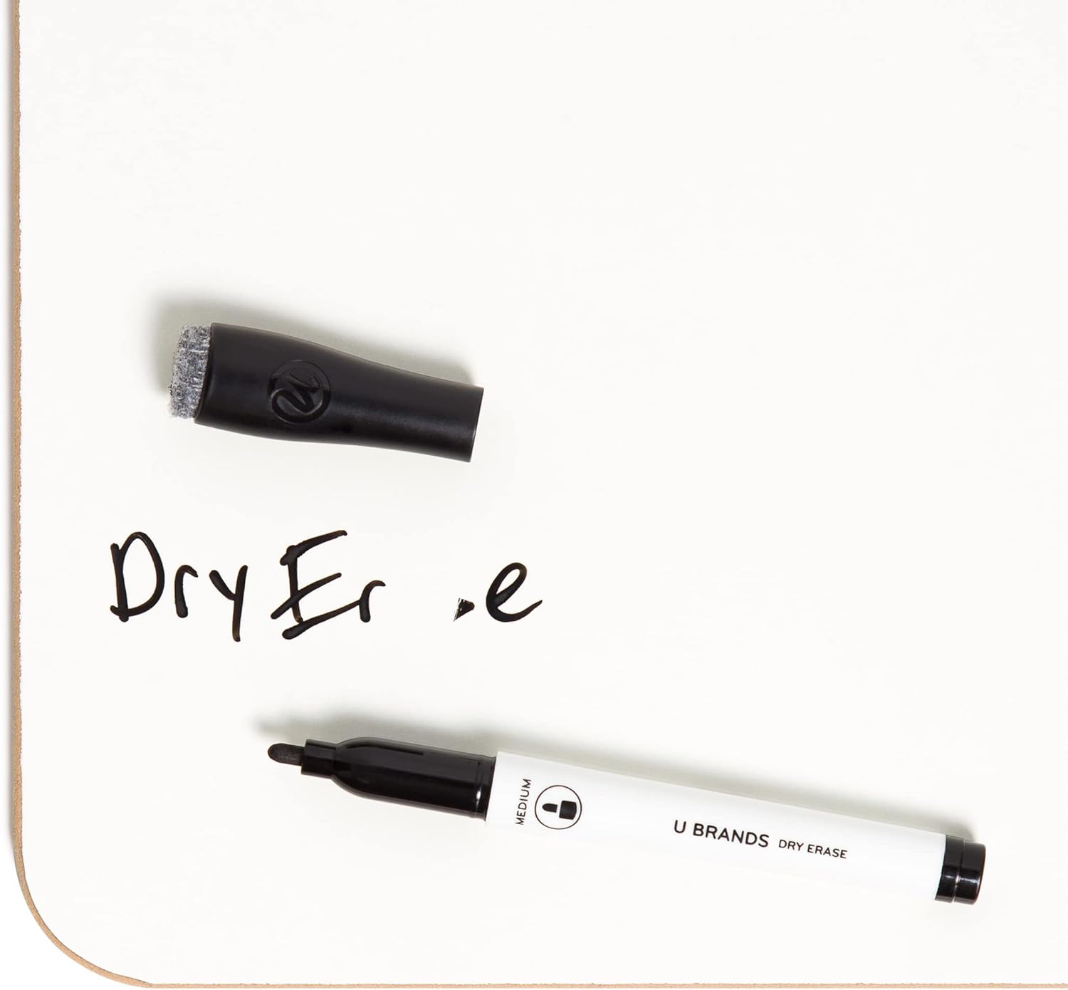 - Dry erase marker is included, featuring a magnetic cap with built-in felt eraser and a contoured marker cap shape which prevents the markers from rolling off any flat surface or tray