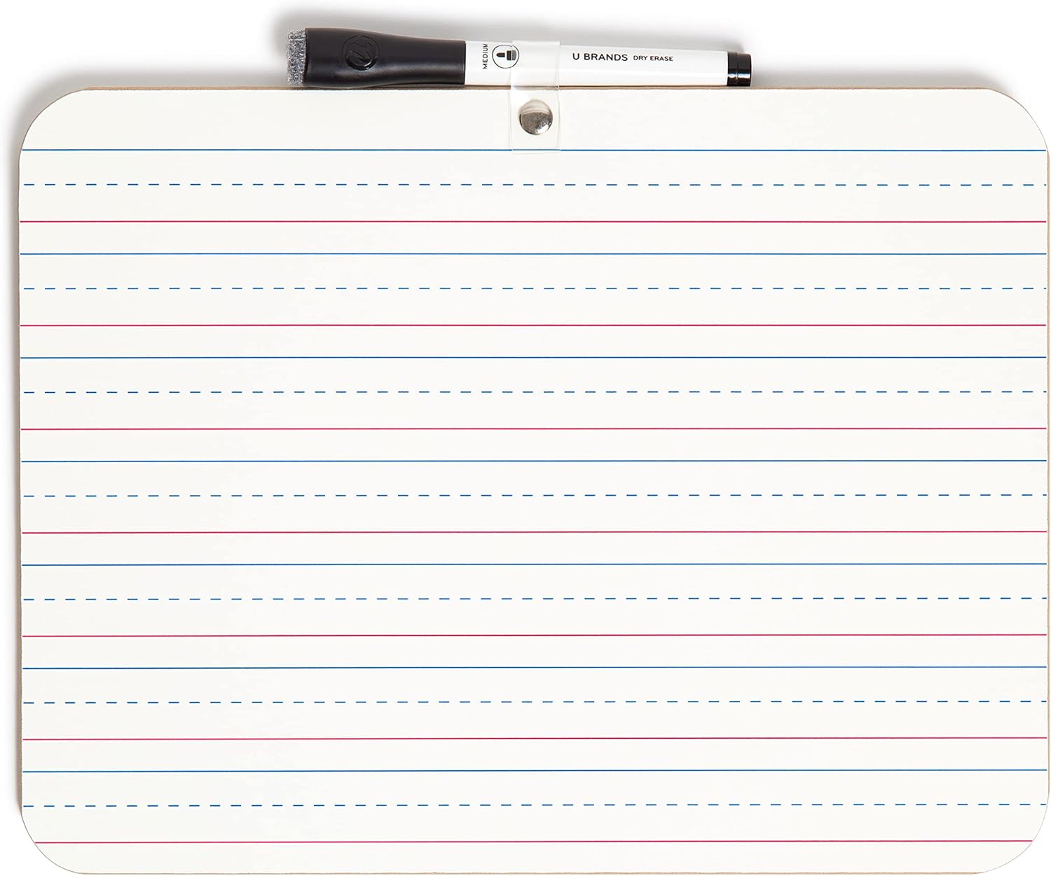 - The dual sided dry erase board feature makes your life paperless; Side one is lined to practice writing block letters or cursive, and side two is a blank