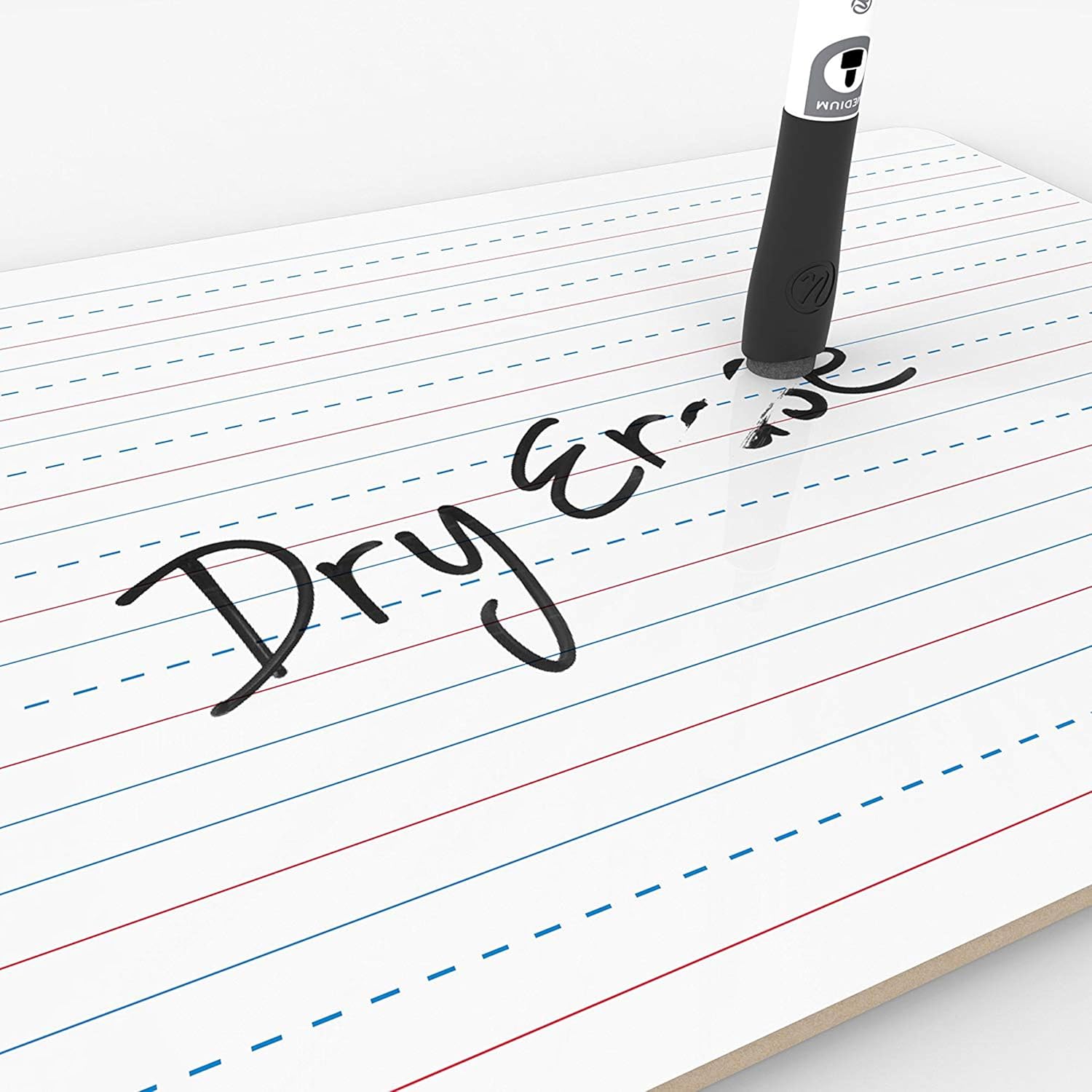 - The dual sided dry erase board feature makes your life paperless; Side one is lined to practice writing block letters or cursive, and side two is a blank