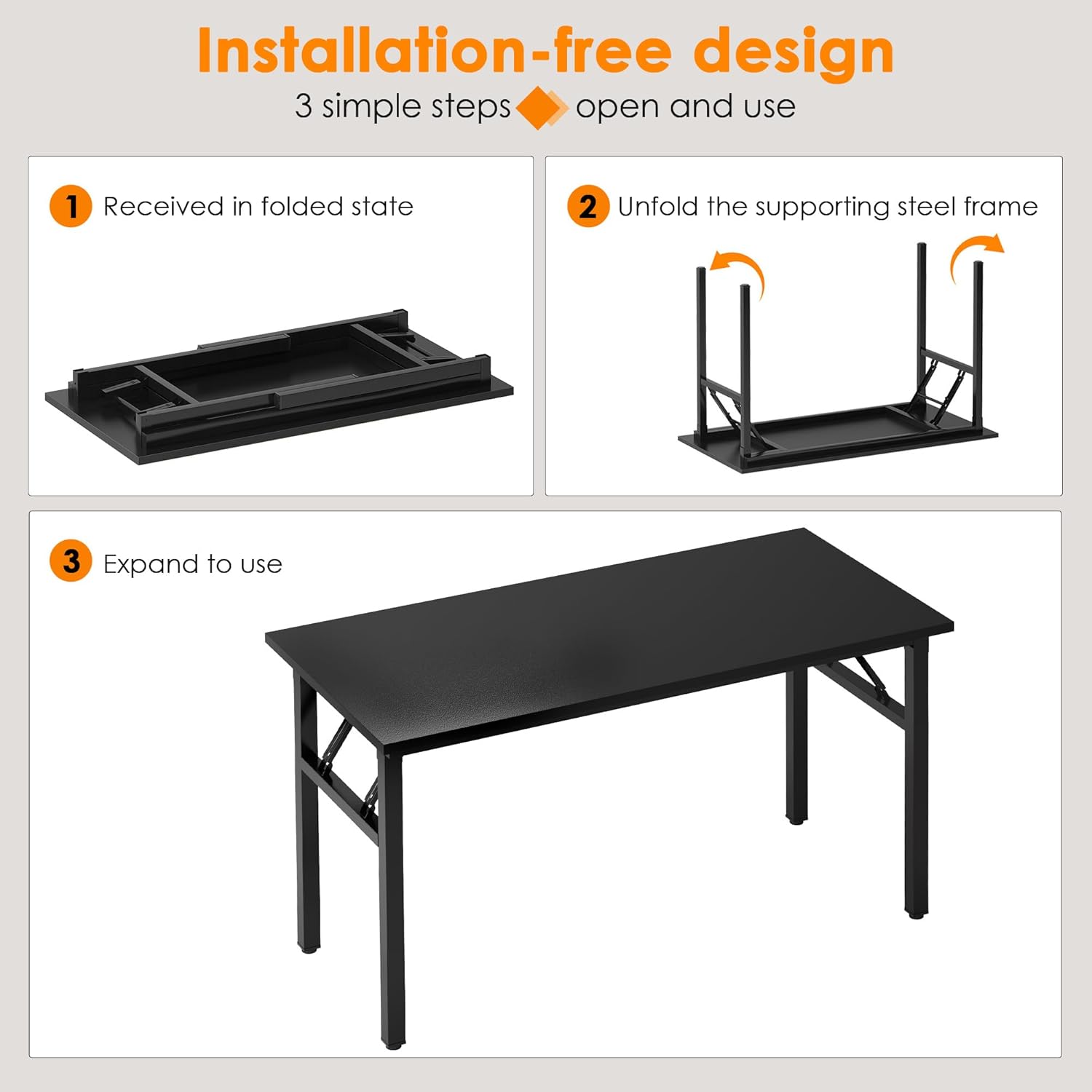 Need Computer Desk Office Desk 47 inches Folding Table with BIFMA Certification Computer Table Workstation No Install Needed, Black Brown