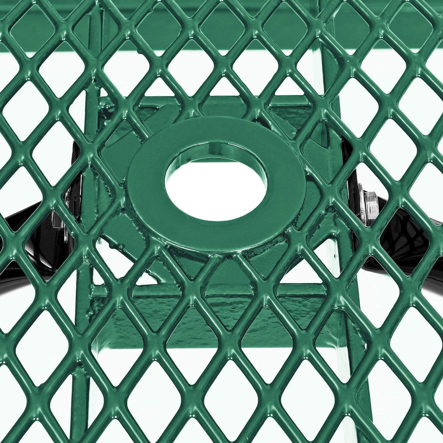 Global Industrial 6’L Rectangular Picnic Table, Expanded Metal, Green Thermoplastic Coating, Attached Benches, 1-1/2” Umbrella Pole Hole, Outdoor-Rated, 1000 lb Capacity, 72” x 30” Tabletop