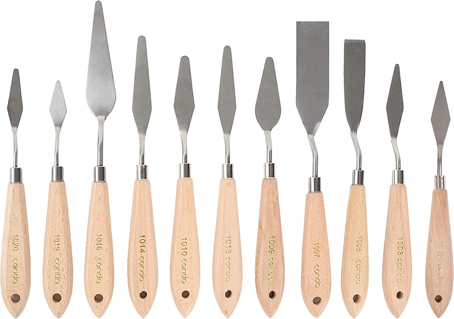 CONDA 11 Piece Stainless Steel Spatula Palette Knife Professional Palette Knife Painting Wood Handle