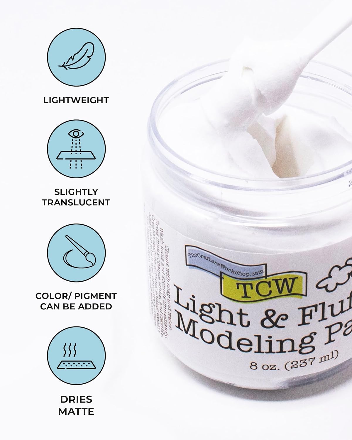- SCULPT, SHAPE, AND ELEVATE - Light and fluffy yet firm enough to hold shape, this modeling paste adds dramatic dimension and bold texture to cards, canvas, mixed media, and DIY crafts.