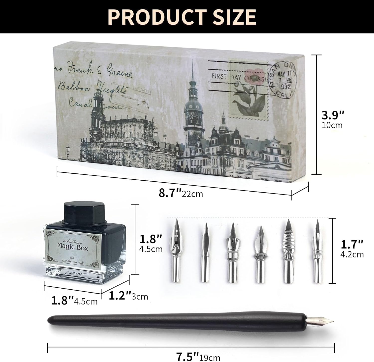 FEATTY Dip Pen for Drawing with ink - Antique Wooden Calligraphy Kits for beginners with 6 Replaceable Nibs