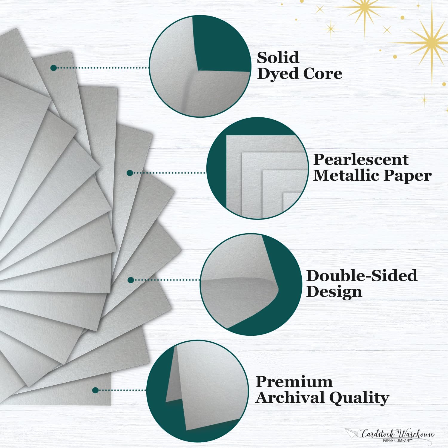 Cardstock Warehouse Stardream Silver Cardstock Paper - 25 Sheets, 8.5 x 11" – 105 lb / 284 GSM Premium Metallic Silver Card Stock for High-end Printing, Card Making, Die-cutting & DIY Projects