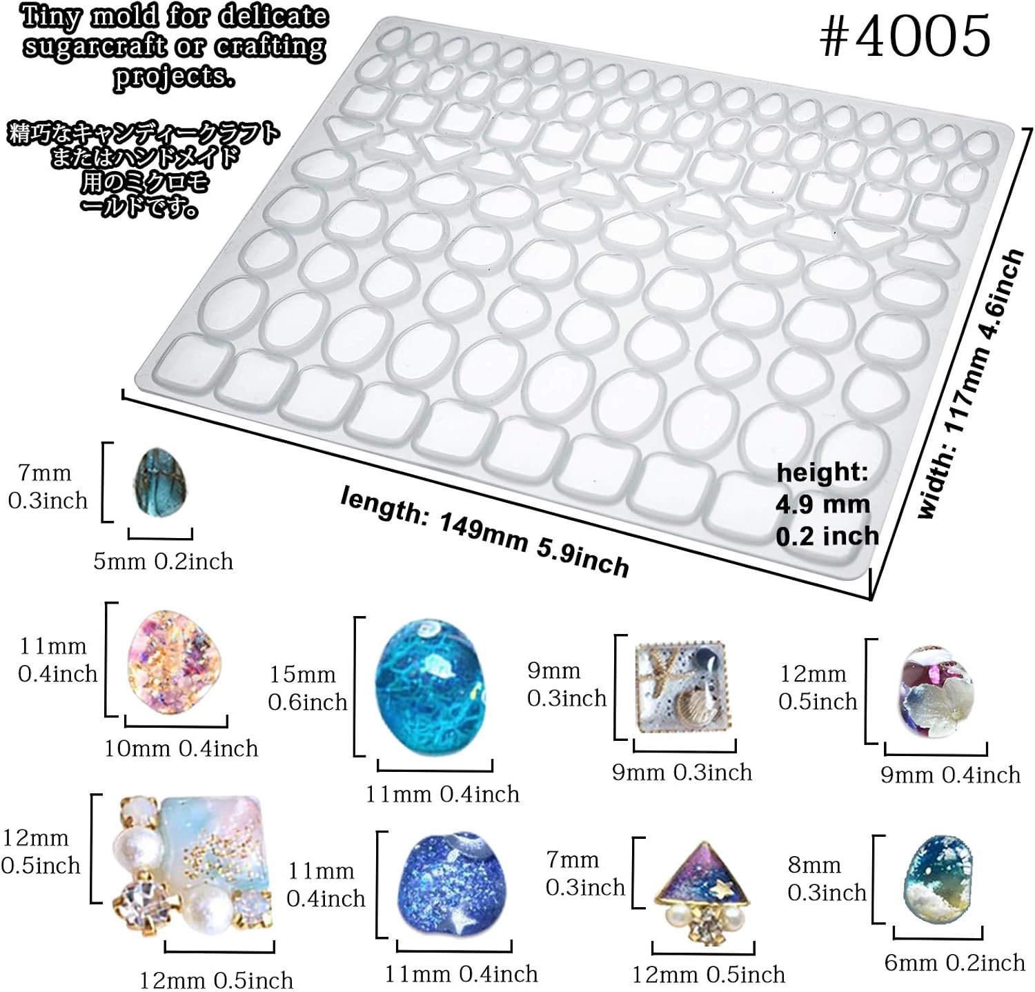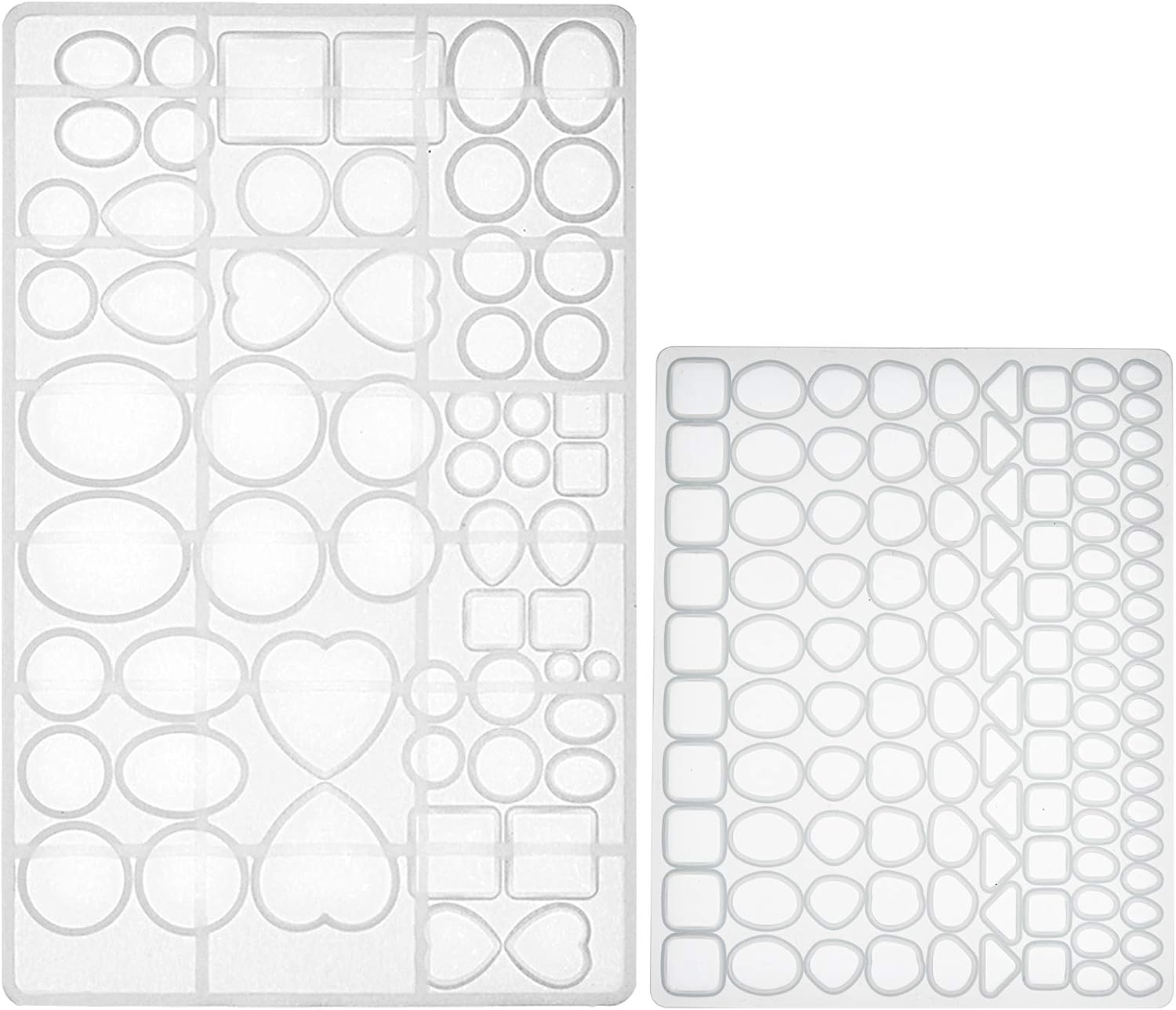 - Clear gem stone molds from 0.2 to 1.6inch(5 to 40mm), 176 cavities 38 designs, varied shapes of triangle, oval, dome teardrop, square, heart, circle, irregularity