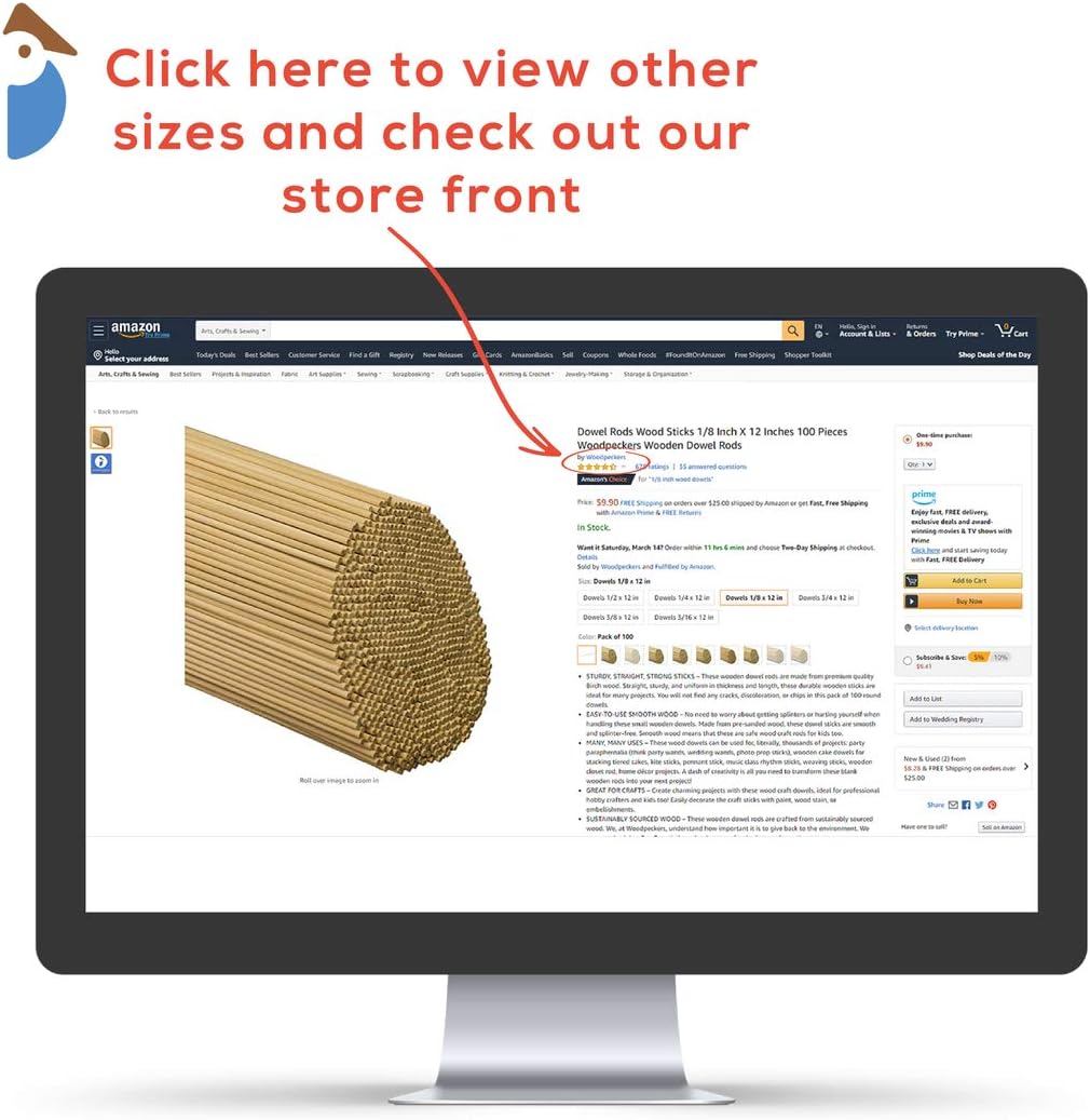 Dowel Rods Wood Sticks Wooden Dowel Rods 1/2 x 60 Inch Unfinished Hardwood Sticks for Crafts and DIYers 10 Pieces by Woodpeckers