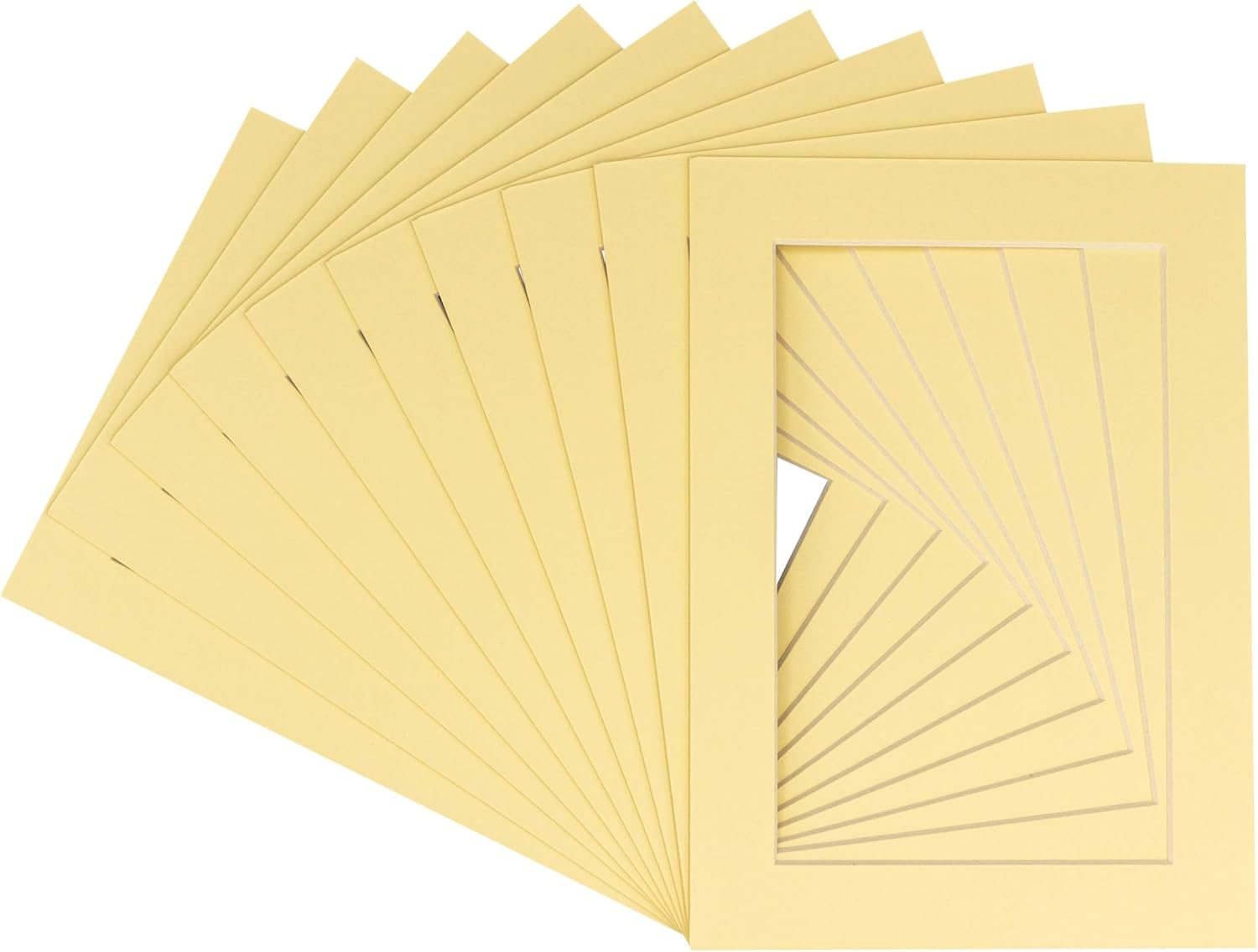 5x7 Mat for 8.5x11 Frame - Precut Mat Board Acid-Free Show Kit with Backing Board, and Clear Bags Soft Yellow 5x7 Photo Matte Made to Fit a 8.5x11 Picture Frame Matboard for Framing, Pack of 100 Mats