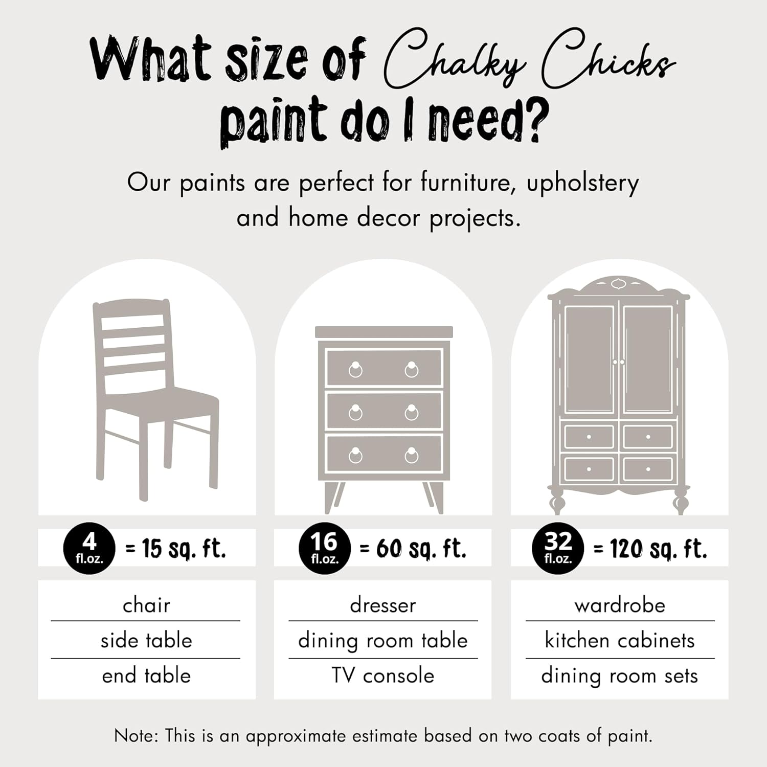 - TRANSFORM FURNITURE AND HOME DECOR WITH EASE: Chalky Chicks will save you time, money, and hassle. No sanding, priming, or multiple coats neededโjust start painting your furniture with our cabinet paint no sanding or priming. Our paint is suitable for wood, metal, concrete, textiles, laminate, and more. Whether you prefer navy blue chalk paint, light blue paint, or green chalk paint, our chalk paint for furniture transforms any space with ease, making it ideal for DIY projects & craft painting.