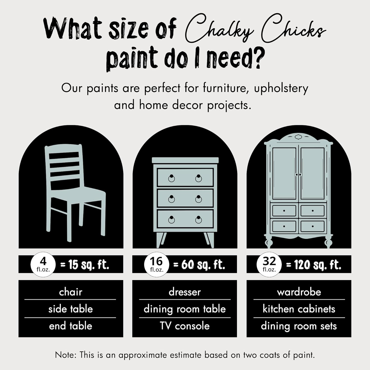 - TRANSFORM FURNITURE AND HOME DECOR WITH EASE: Chalky Chicks will save you time, money, and hassle. No sanding, priming, or multiple coats needed—just start painting your furniture with our cabinet paint no sanding or priming. Our paint is suitable for wood, metal, concrete, textiles, laminate, and more. Whether you prefer navy blue chalk paint, light blue paint, or green chalk paint, our chalk paint for furniture transforms any space with ease, making it ideal for DIY projects & craft painting.