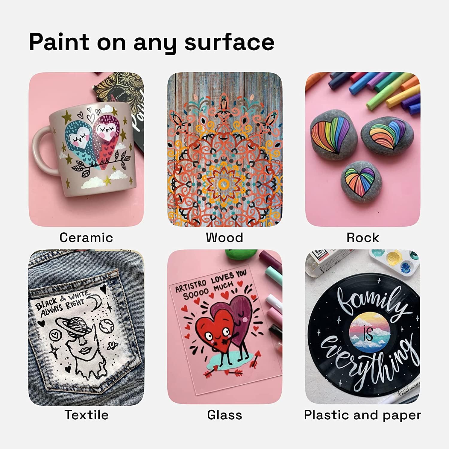 - MULTI-SURFACE: Artistro craft markers are perfect for almost any surface. Paint on rocks, wood, glass, pumpkin or more with these paint pens! Perfect for halloween decorations or use them as fabric paint pens.