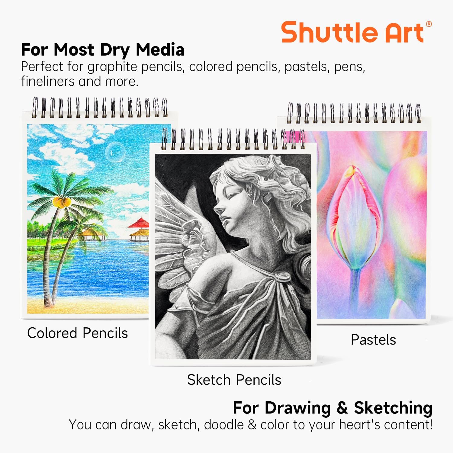- 160 SHEETS VALUE SET: Shuttle Art sketch books set contains 2 pack of 9”x12” sketch pads, 80 sheets of each, total 160 sheets. With 68lb/100gsm drawing paper, you can draw, sketch, doodle and color either at home or on the go. Perfect art paper for drawing and painting