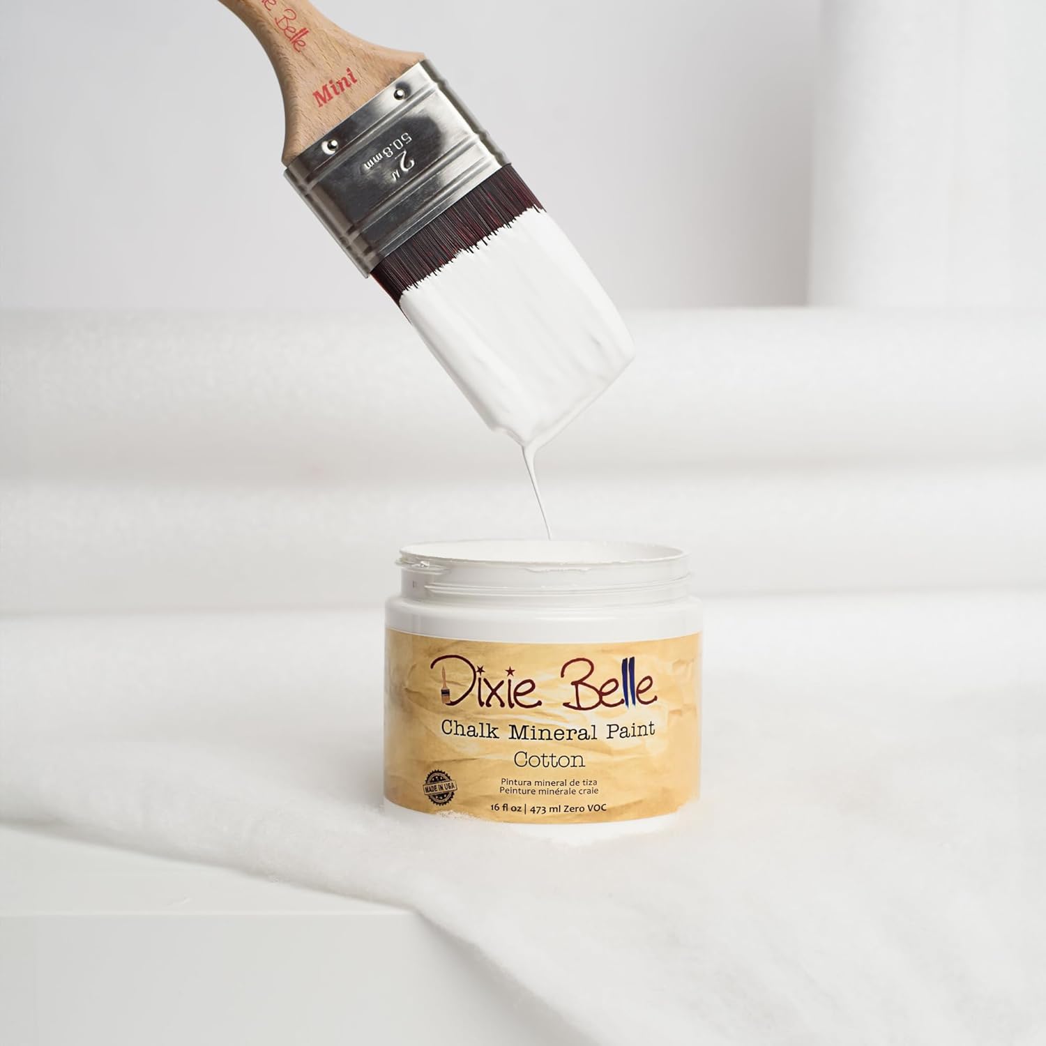 - CHALK MINERAL PAINT – Cotton is our purest white chalk mineral paint, perfect for a clean and classic look. This color is perfect for anyone who wants to decorate with stark simplicity. Our chalk mineral paint is ideal for wood, metal, plastics, brick, stone, glass, concrete, and so much more. Use Cotton to create the chippy distressed farmhouse look or dress is down for minimalist design. An 8oz container of this paint should cover about 38 sq. ft.