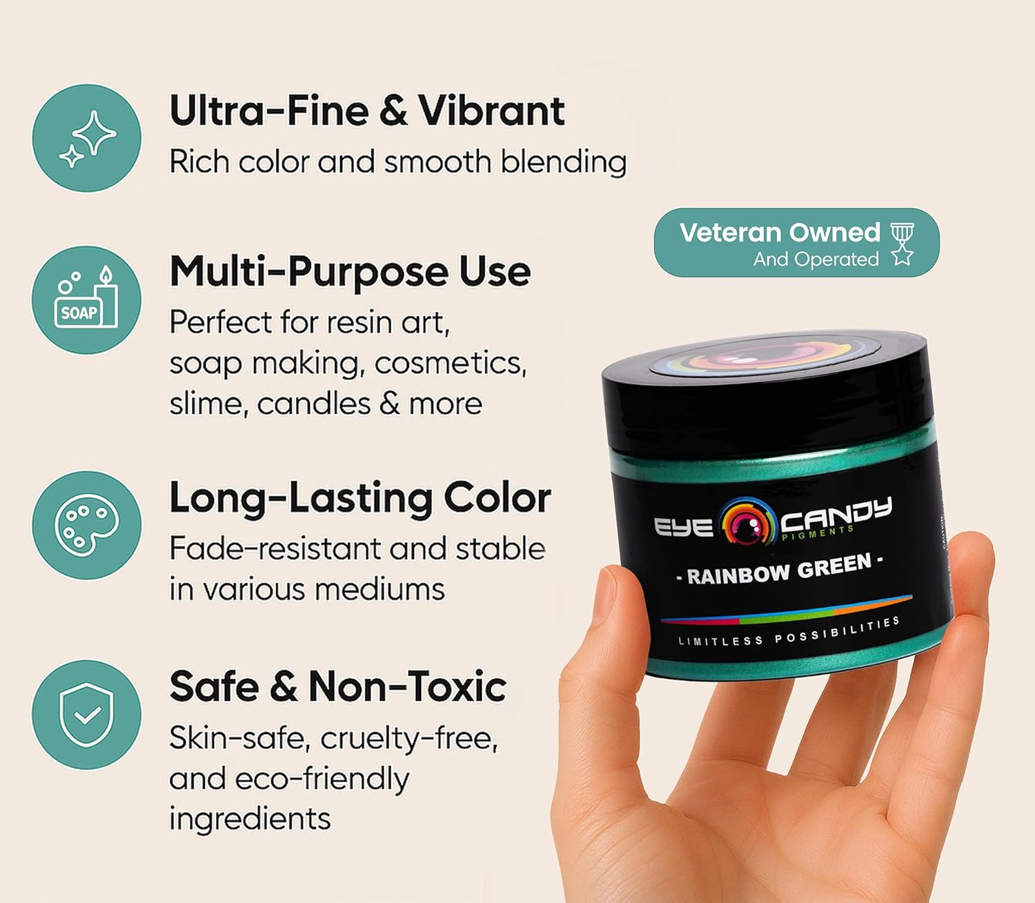 Eye Candy Pigments Premium Green Mica Powder - Rainbow Green (50gr) - for Epoxy, Resin, Soap, Paint, Woodworking, Acrylic Pouring, Bath Bombs, Fishing Lures - DIY Arts and Crafts Additive