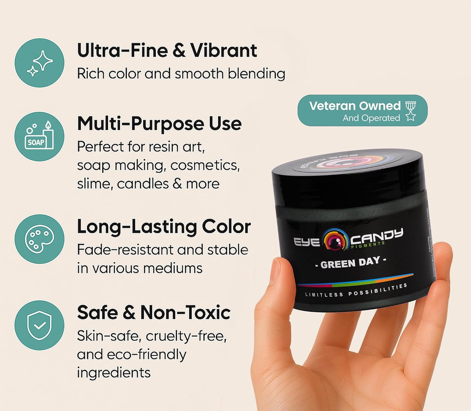 - MULTIPURPOSE GREEN MICA POWDER – Introducing Green Day, a green pigment gracefully tinged with subtle grey notes. This unique shade radiates understated elegance and effortlessly adapts across various applications. Elevate your creative ventures, be it in epoxy resin or acrylic painting. Add a sophisticated twist to slime, bath bombs, and more. Ideal for jewelry, melt & pour techniques, plastics, and candles. Experience the myriad possibilities.