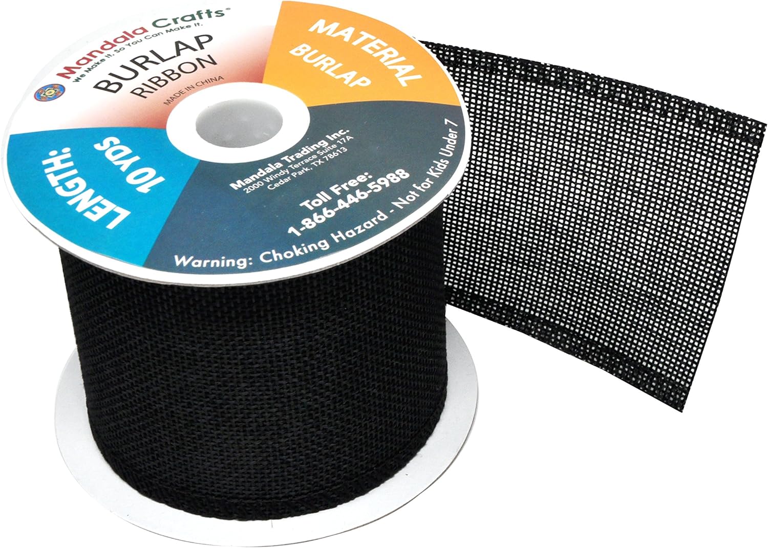 Mandala Crafts Black Burlap Ribbon 3 Inches Wide Jute Ribbons for Crafts - 20 Yds Roll Rustic Burlap Wrap Trim Ribbons for Wreaths Bows Wedding Party Decoration