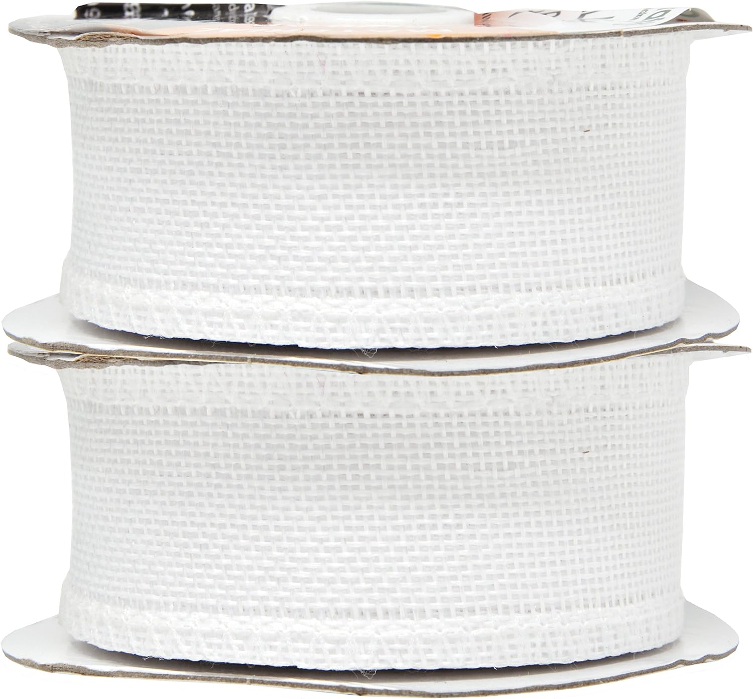 - Bulk Burlap Ribbon White Linen Ribbon: Each continuous 1.5 in colored burlap roll is 10 yard long. With two white burlap rolls, total 20 yards long, the burlap ribbon bulk pack is handy to decorate trees and mason jars or hang pictures.