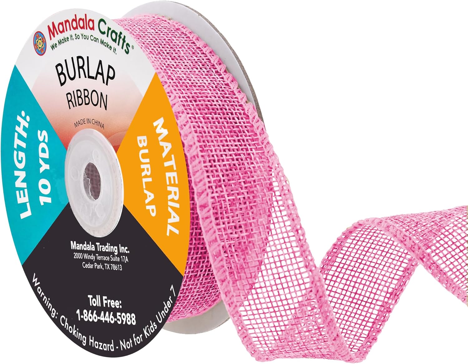 Mandala Crafts Pink Burlap Ribbon 1 Inch Wide Jute Ribbons for Crafts - 20 Yds Roll Rustic Burlap Wrap Trim Ribbons for Wreaths Bows Wedding Party Decoration