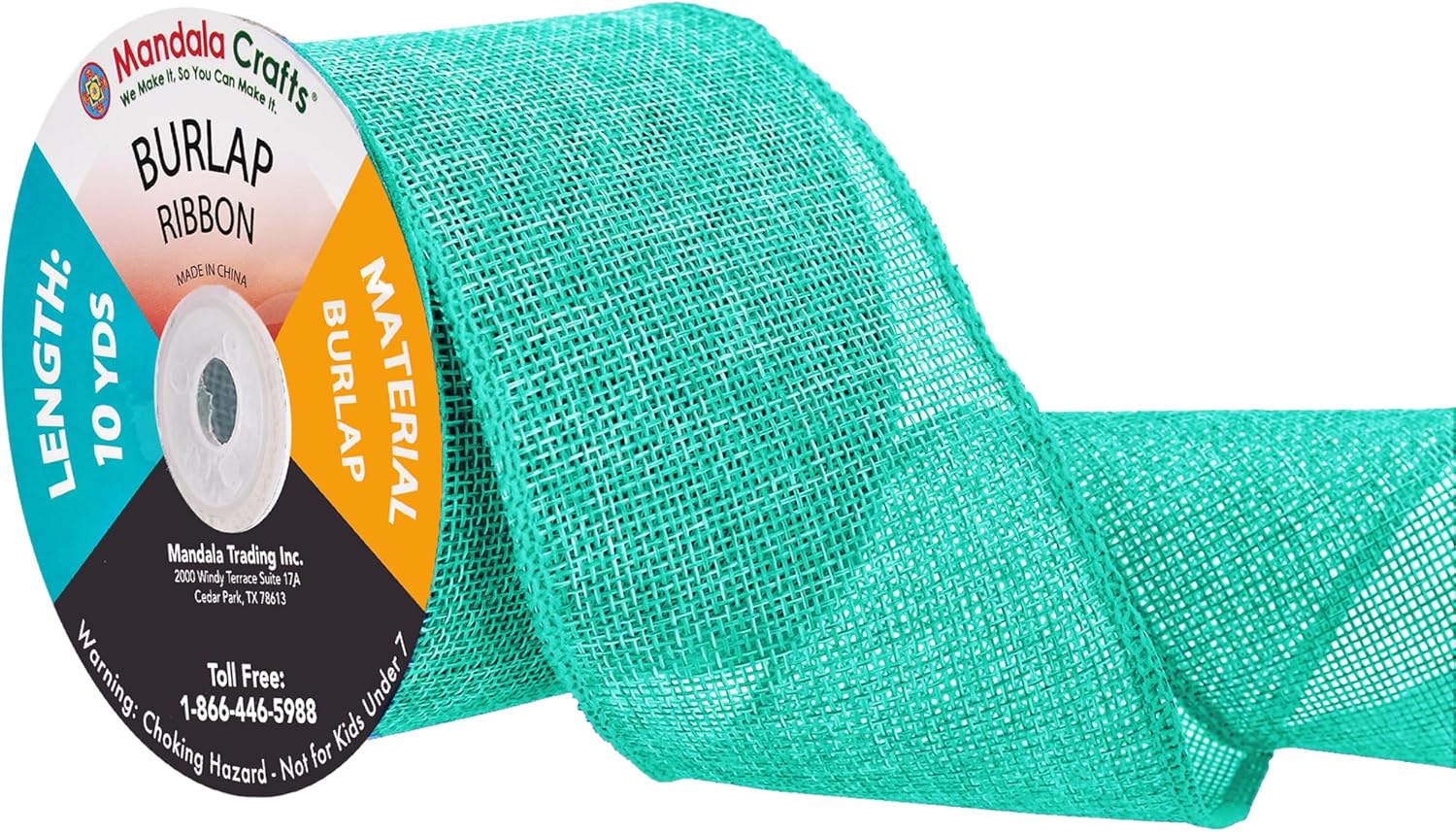 - Bulk Burlap Ribbon Turquoise Linen Ribbon: Each continuous 3 in colored burlap roll is 10 yard long. With two turquoise burlap rolls, total 20 yards long, the burlap ribbon bulk pack is handy to decorate trees and mason jars or hang pictures.