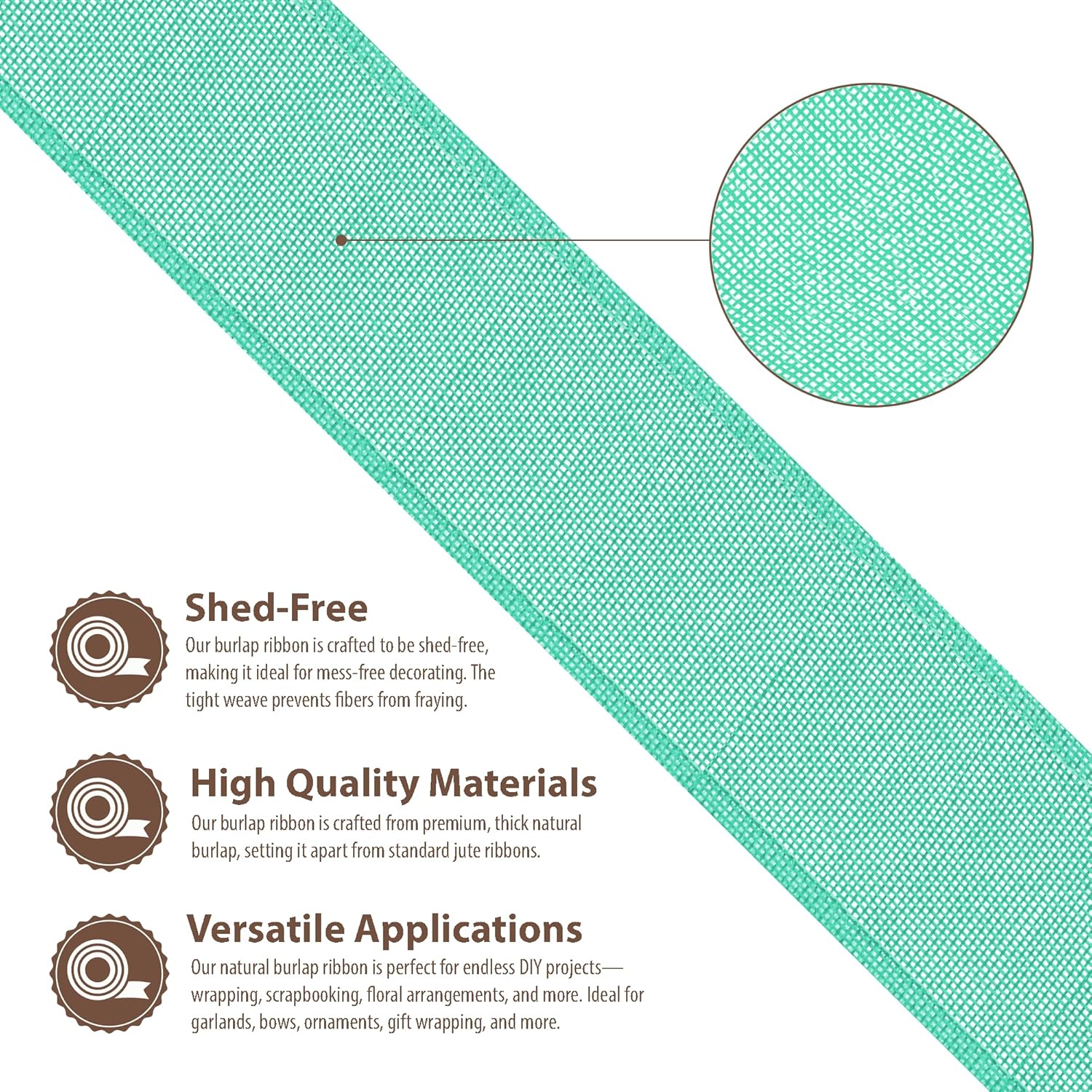 - Natural Burlap Ribbon: Compared to other jute burlap ribbons, our rustic burlaps ribbon with a fray & shed-resistant hemmed edges is made from thicker turquoise burlap fabric. The indoor & outdoor colored burlap crafts ribbon is colorfast and will not bleed.