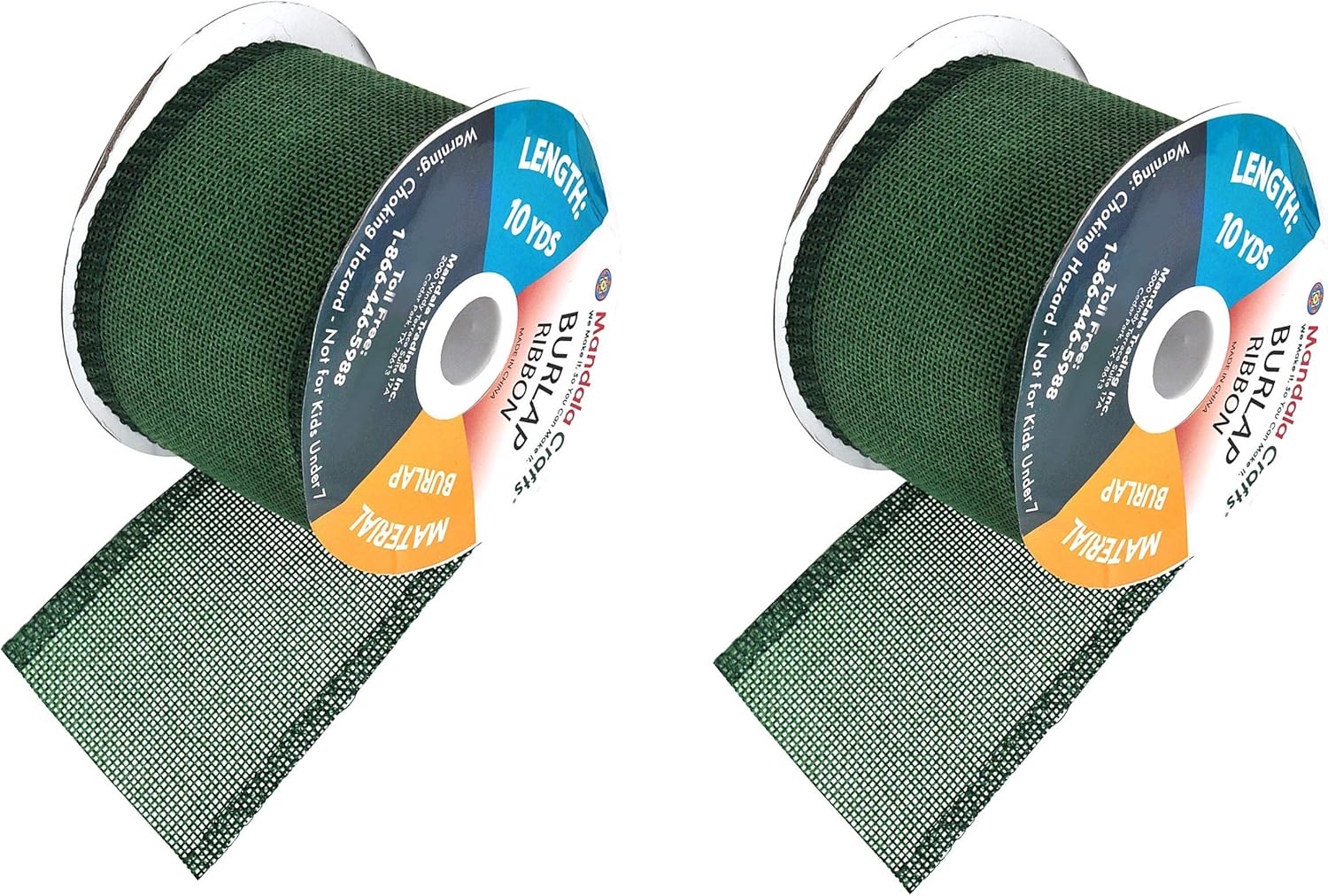Mandala Crafts Green Burlap Ribbon 2.5 Inches Wide Jute Ribbons for Crafts - 20 Yds Roll Rustic Burlap Wrap Trim Ribbons for Wreaths Bows Wedding Party Decoration