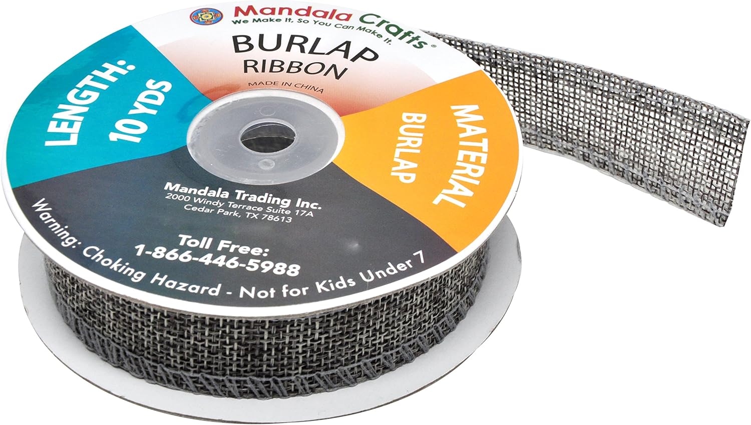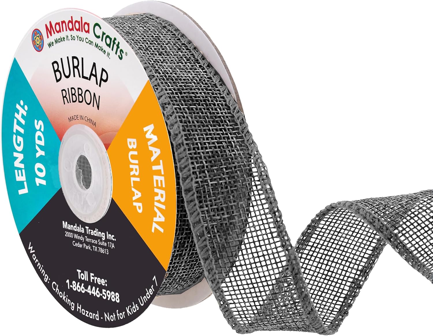 Mandala Crafts Gray Burlap Ribbon 1 Inch Wide Jute Ribbons for Crafts - 20 Yds Roll Rustic Burlap Wrap Trim Ribbons for Wreaths Bows Wedding Party Decoration