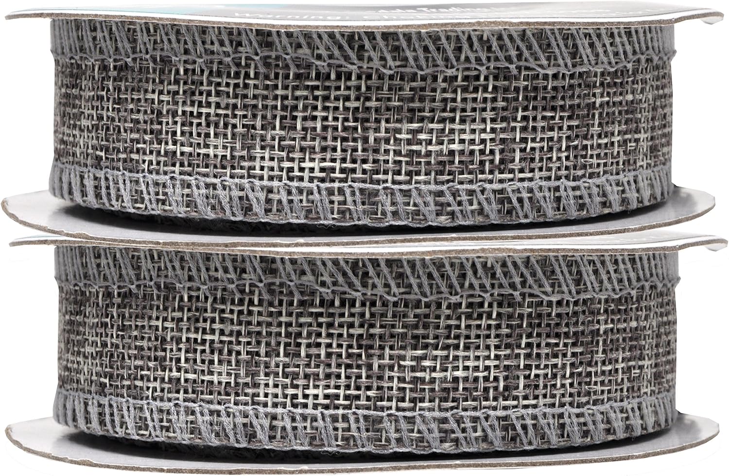 - Bulk Burlap Ribbon Gray Linen Ribbon: Each continuous 1 in colored burlap roll is 10 yard long. With two grey burlap rolls, total 20 yards long, the burlap ribbon bulk pack is handy to decorate trees and mason jars or hang pictures.