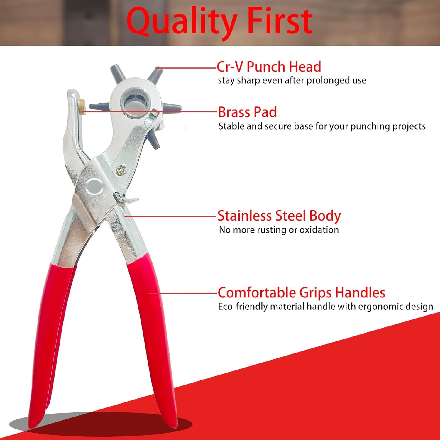 - 【Durable & Sharp High-Carbon Steel Punch Heads】 Built with heavy-duty steel, this leather punch tool is strong, sharp, and long-lasting, capable of effortlessly punching through thick leather, belts, and more.