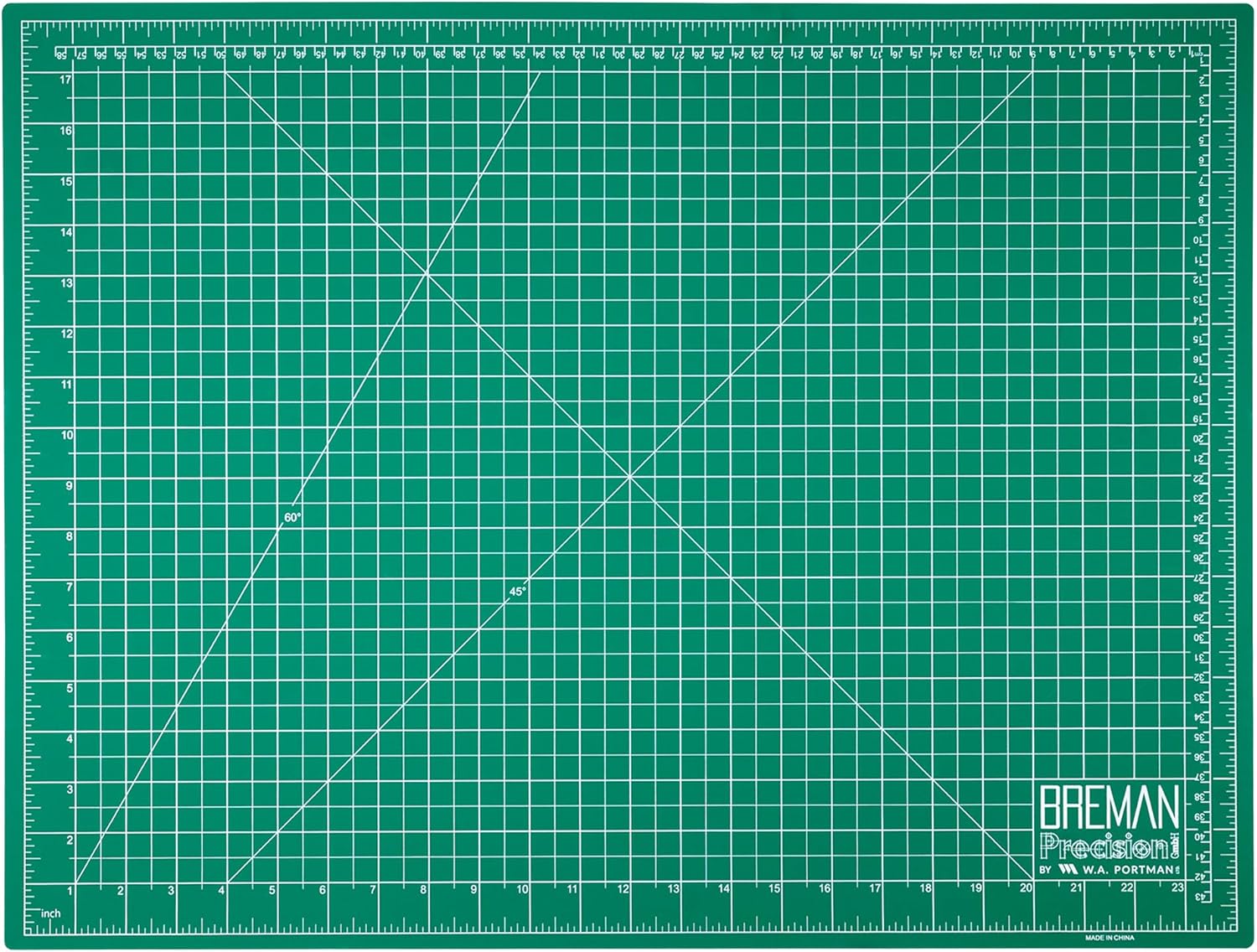 - Full-Size Fabric Cutting Mat - Breman Precision’s cutting board for crafts offers a 18x24 inch surface with a 1/4 inch border, featuring 1 and 1/2 inch grids, 1/8 inch ruler marks, and 45° and 60° guides for precise cuts. Designed as an 18x24 cutting mat, it doubles as a sewing mat and also functions well as a measuring mat