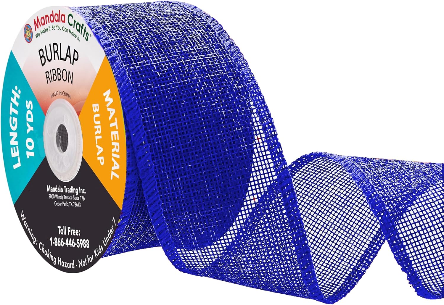 Mandala Crafts Royal Blue Burlap Ribbon 2.5 Inches Wide Jute Ribbons for Crafts - 20 Yds Roll Rustic Burlap Wrap Trim Ribbons for Wreaths Bows Wedding Party Decoration