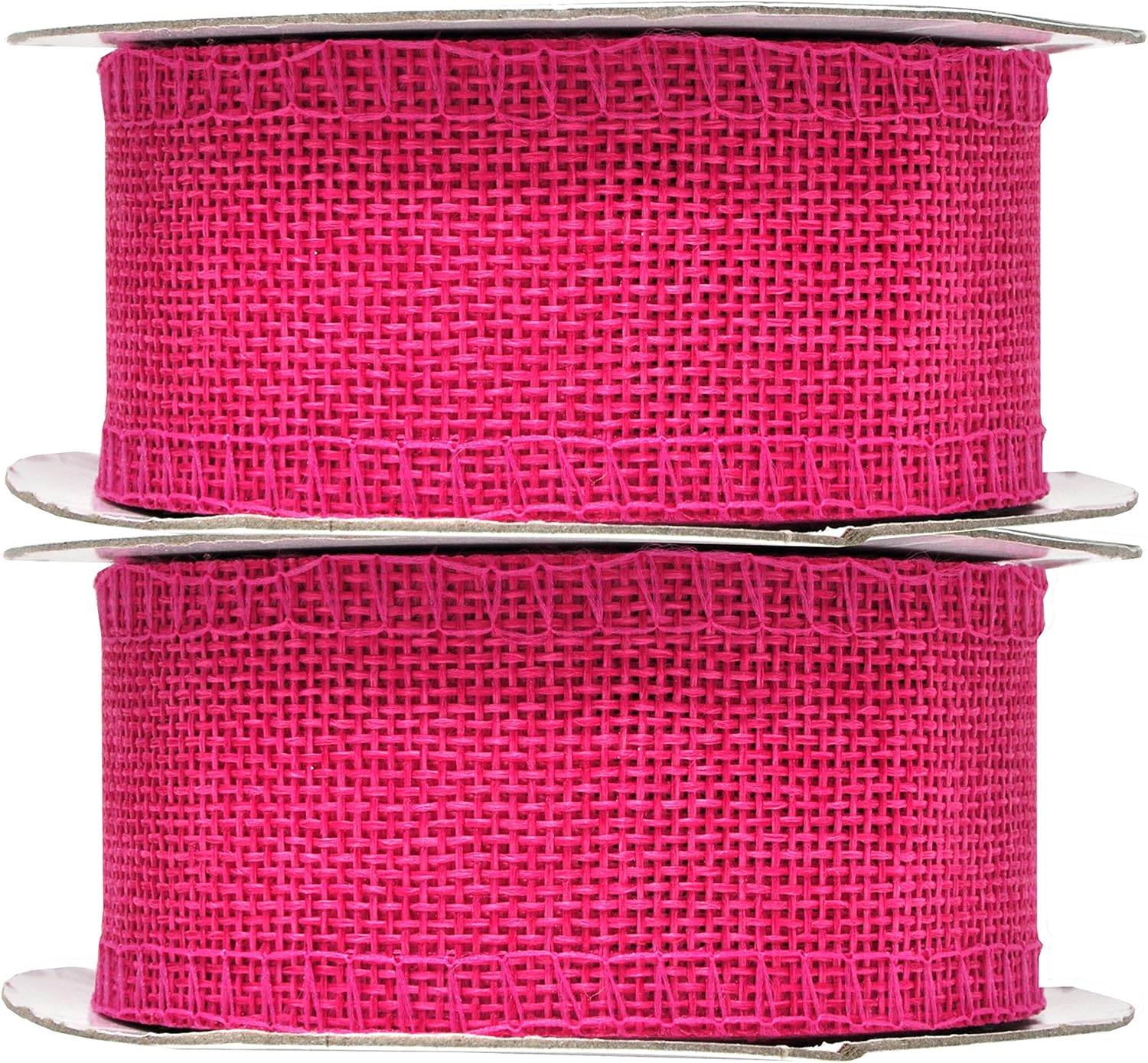 - Bulk Burlap Ribbon Hot Pink Linen Ribbon: Each continuous 1.5 in colored burlap roll is 10 yard long. With two hot pink burlap rolls, total 20 yards long, the burlap ribbon bulk pack is handy to decorate trees and mason jars or hang pictures.