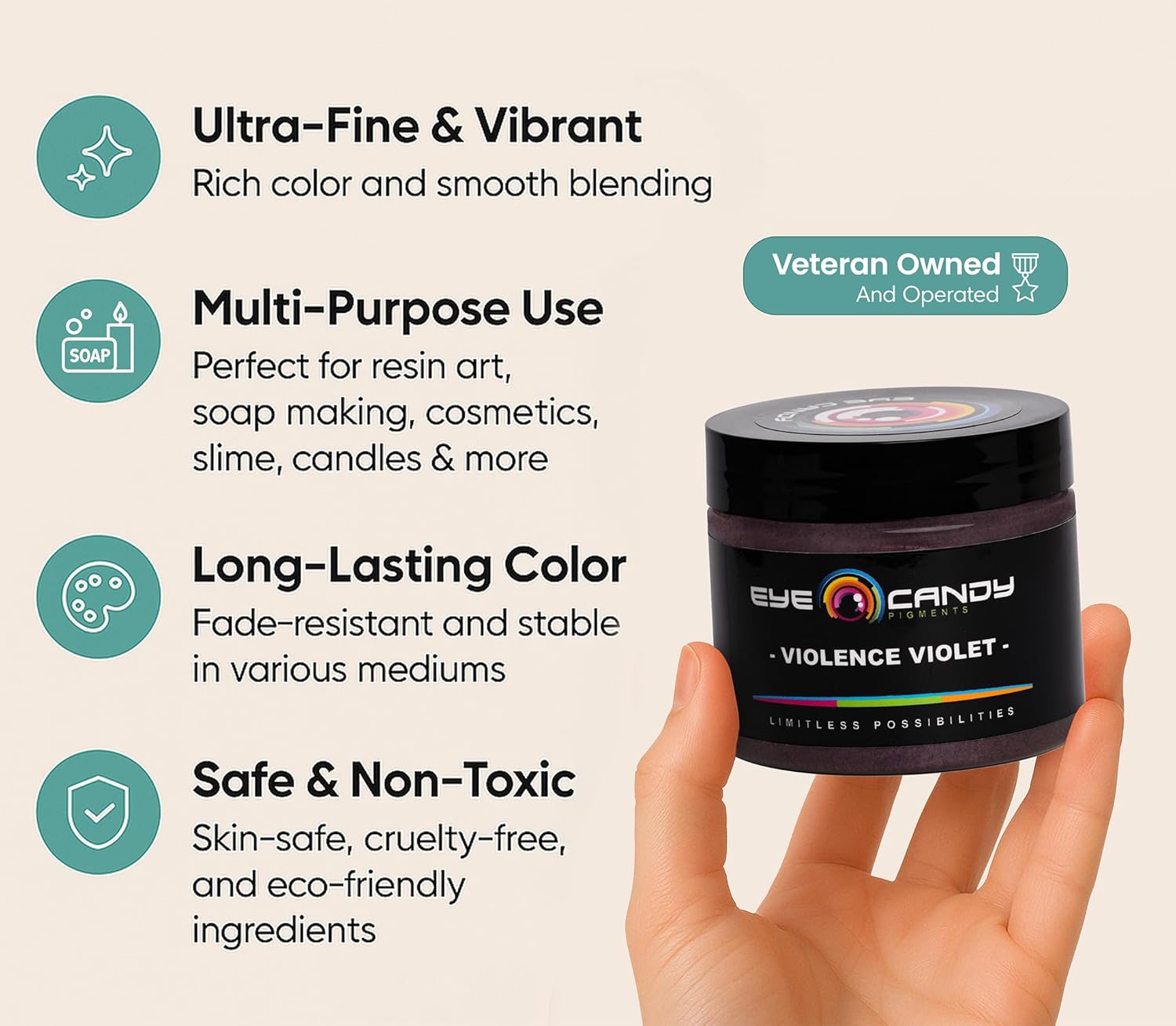 Eye Candy Pigments Premium Purple Mica Powder - Violence Violet (50gr) - for Epoxy, Resin, Soap, Paint, Woodworking, Acrylic Pouring, Bath Bombs, Fishing Lures - DIY Arts and Crafts Additive