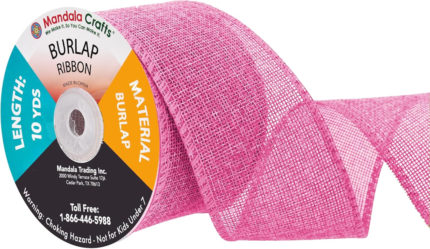 Mandala Crafts Pink Burlap Ribbon 2.5 Inches Wide Jute Ribbons for Crafts - 20 Yds Roll Rustic Burlap Wrap Trim Ribbons for Wreaths Bows Wedding Party Decoration