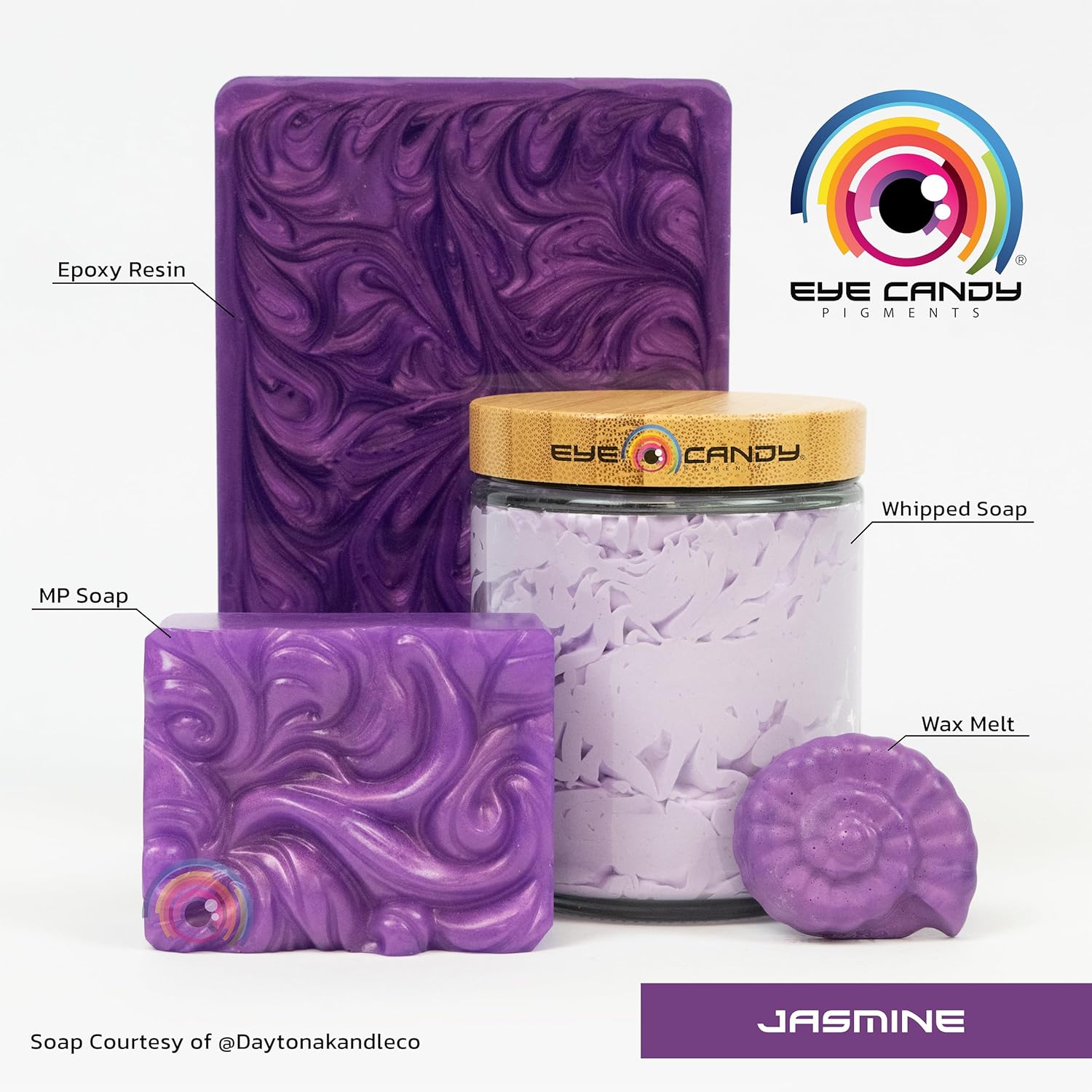 - MULTIPURPOSE PURPLE MICA POWDER – Experience the enchanting allure of our Jasmine, showcasing a stunning violet-red hue. This pigment exudes elegance and charm, making it perfect for elevating your artistic endeavors. Its rich shade promises a touch of luxury, ensuring your projects radiate with brilliance. Tailored for a variety of applications including epoxy resin, melt & pour, plastics, acrylic painting, slime, bath bombs, jewelry, and candle making.
