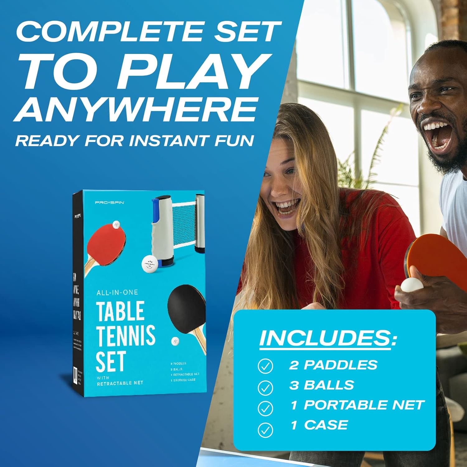PRO SPIN All-in-One Ping Pong Set - Retractable Ping Pong Net for Any Table (72"), Ping Pong Paddles and Balls, Storage Case - Portable Table Tennis Family Games, Gifts for Boys & Girls
