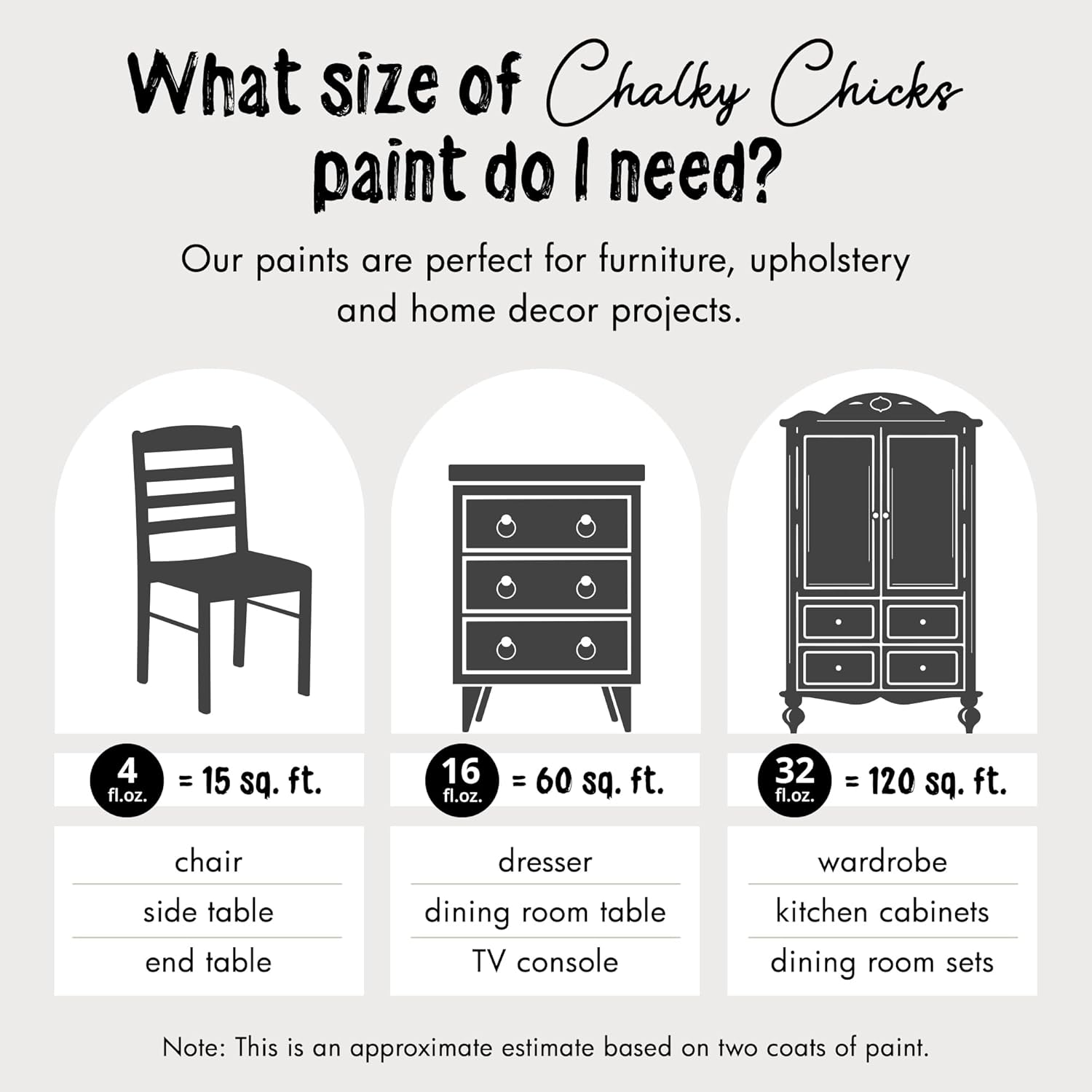 - TRANSFORM FURNITURE AND HOME DECOR WITH EASE: Chalky Chicks will save you time, money, and hassle. No sanding, priming, or multiple coats needed—just start painting your furniture with our cabinet paint no sanding or priming. Our paint is suitable for wood, metal, concrete, textiles, laminate, and more. Whether you prefer navy blue chalk paint, light blue paint, or green chalk paint, our chalk paint for furniture transforms any space with ease, making it ideal for DIY projects & craft painting.