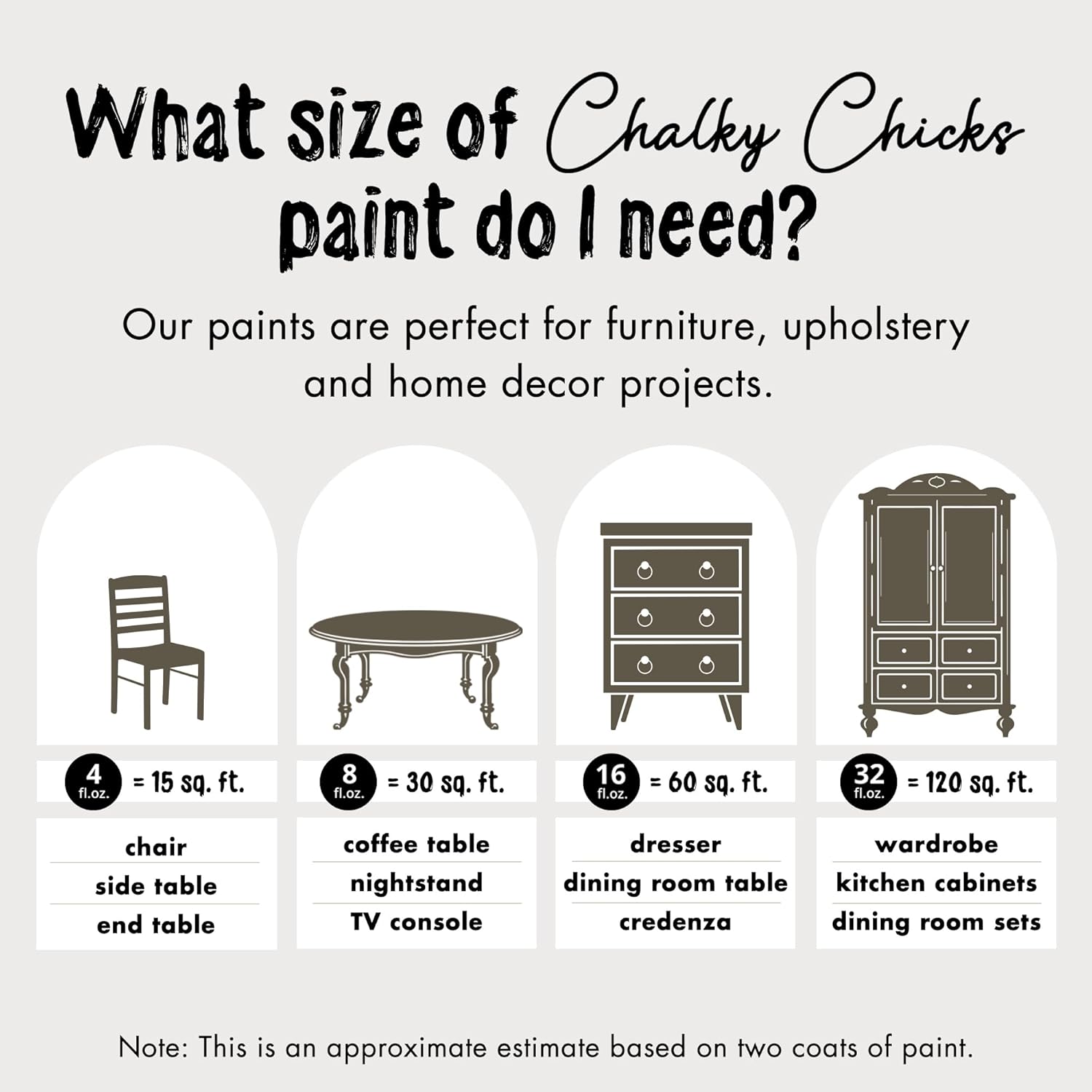 - TRANSFORM FURNITURE AND HOME DECOR WITH EASE: Chalky Chicks will save you time, money, and hassle. No sanding, priming, or multiple coats needed—just start painting your furniture with our cabinet paint no sanding or priming. Our paint is suitable for wood, metal, concrete, textiles, laminate, and more. Whether you prefer navy blue chalk paint, light blue paint, or green chalk paint, our chalk paint for furniture transforms any space with ease, making it ideal for DIY projects & craft painting.