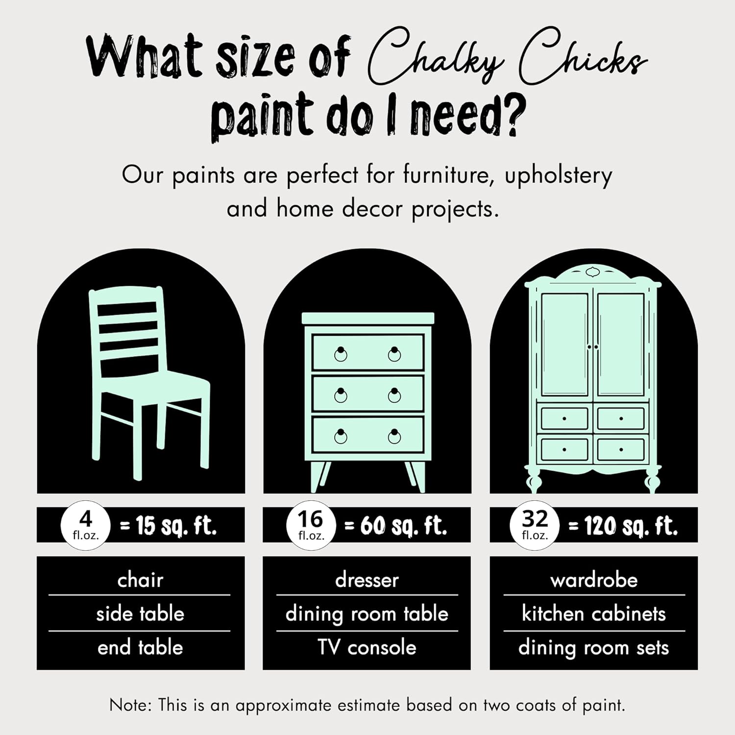 - TRANSFORM FURNITURE AND HOME DECOR WITH EASE: Chalky Chicks will save you time, money, and hassle. No sanding, priming, or multiple coats needed—just start painting your furniture with our cabinet paint no sanding or priming. Our paint is suitable for wood, metal, concrete, textiles, laminate, and more. Whether you prefer navy blue chalk paint, light blue paint, or green chalk paint, our chalk paint for furniture transforms any space with ease, making it ideal for DIY projects & craft painting.