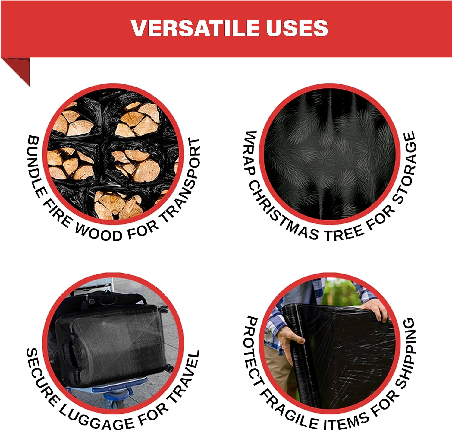 - Wrap, secure and transport anything: Bulk supply of flexible 17.5 inch stretch wrap provides you with 1,100 square feet of durable, multipurpose protection for all kinds of commercial, industrial, and residential packing applications. Uses include wrapping skids and pallets of merchandise; moving furniture, appliances, and household products; and shielding artworks, books, china, archives, and other items for storage.