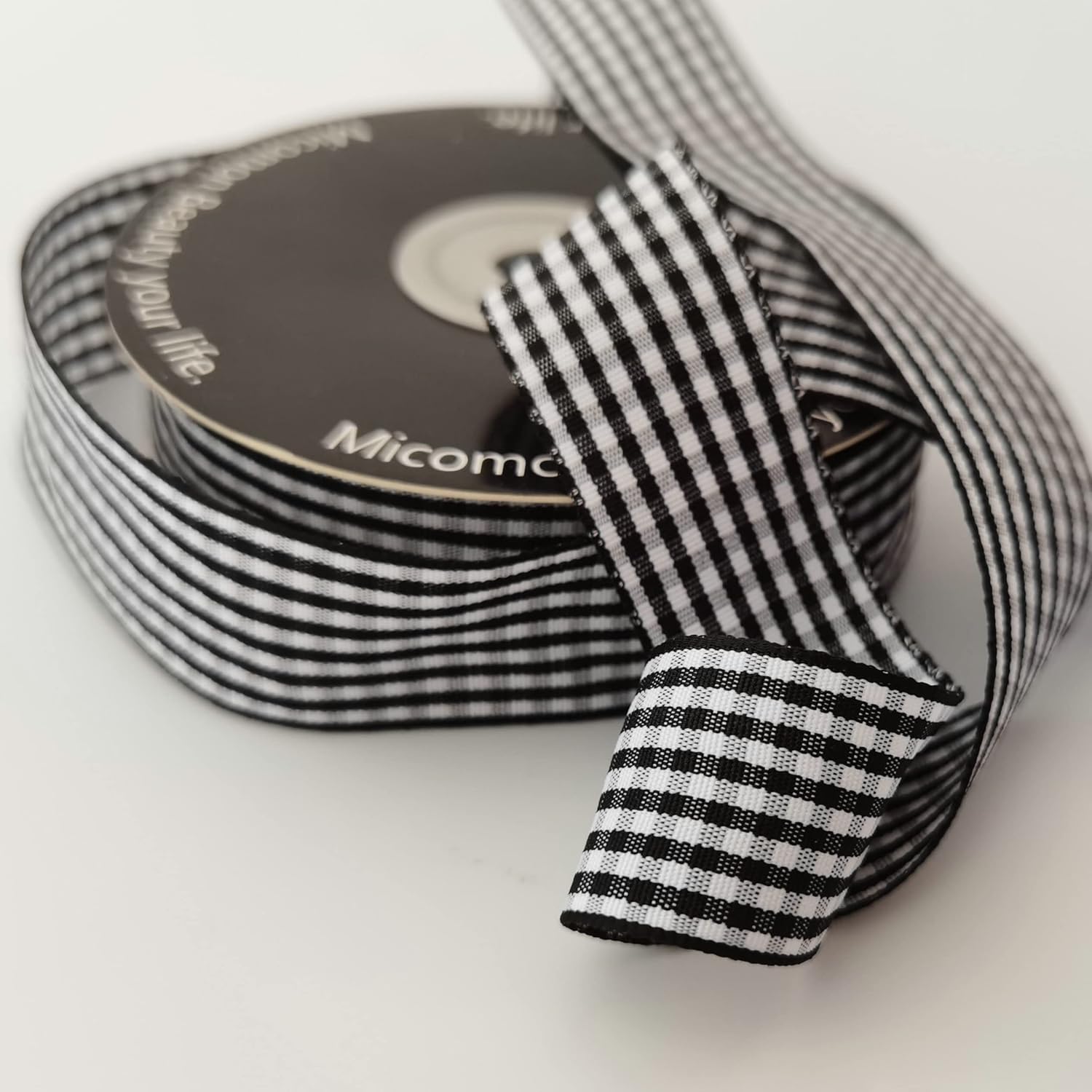 1 Inch Black and White Woven Edge Gingham Ribbon 25 Yards Each Roll 100% Polyester (1", Black)