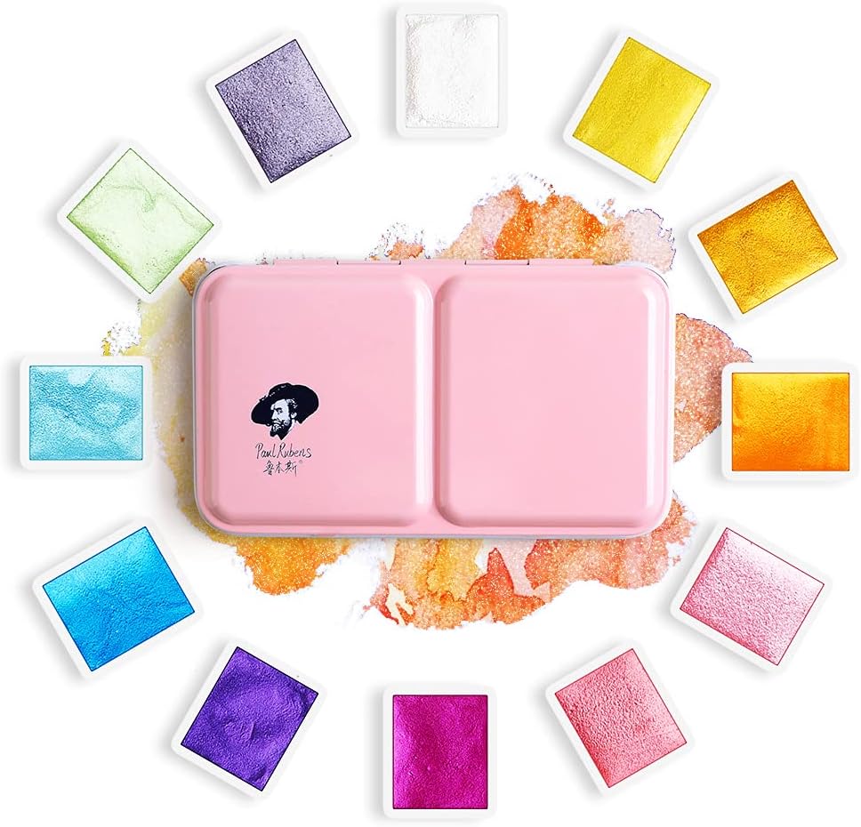 Paul Rubens Watercolor Paint, 12 Assorted Colors with Glitter Sparkle Effect, Professional Grade for Aritsts Adults Begginners, Portable and Compact Art Supplies