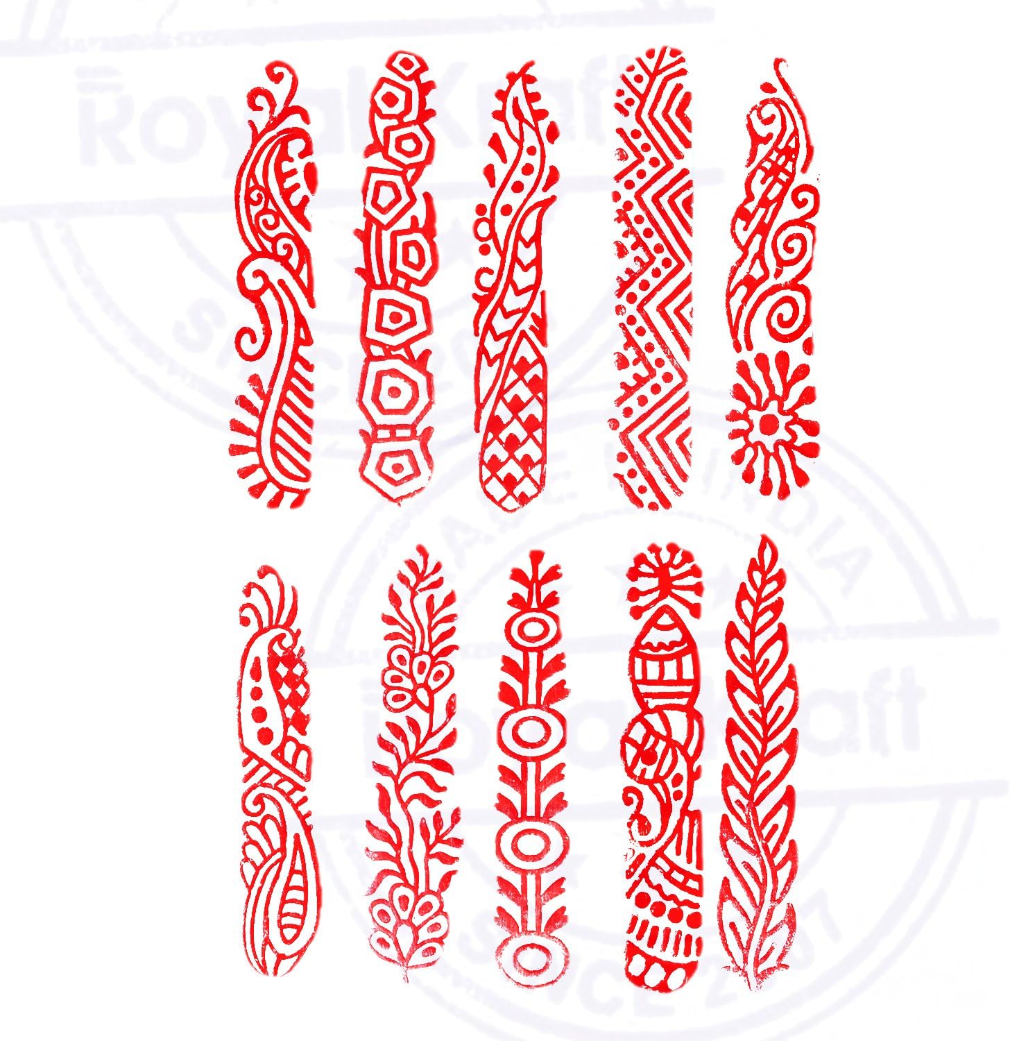 Royal Kraft Textile Wooden Blocks Innovative Border Design Printing Stamps (Set of 10) Htag2160