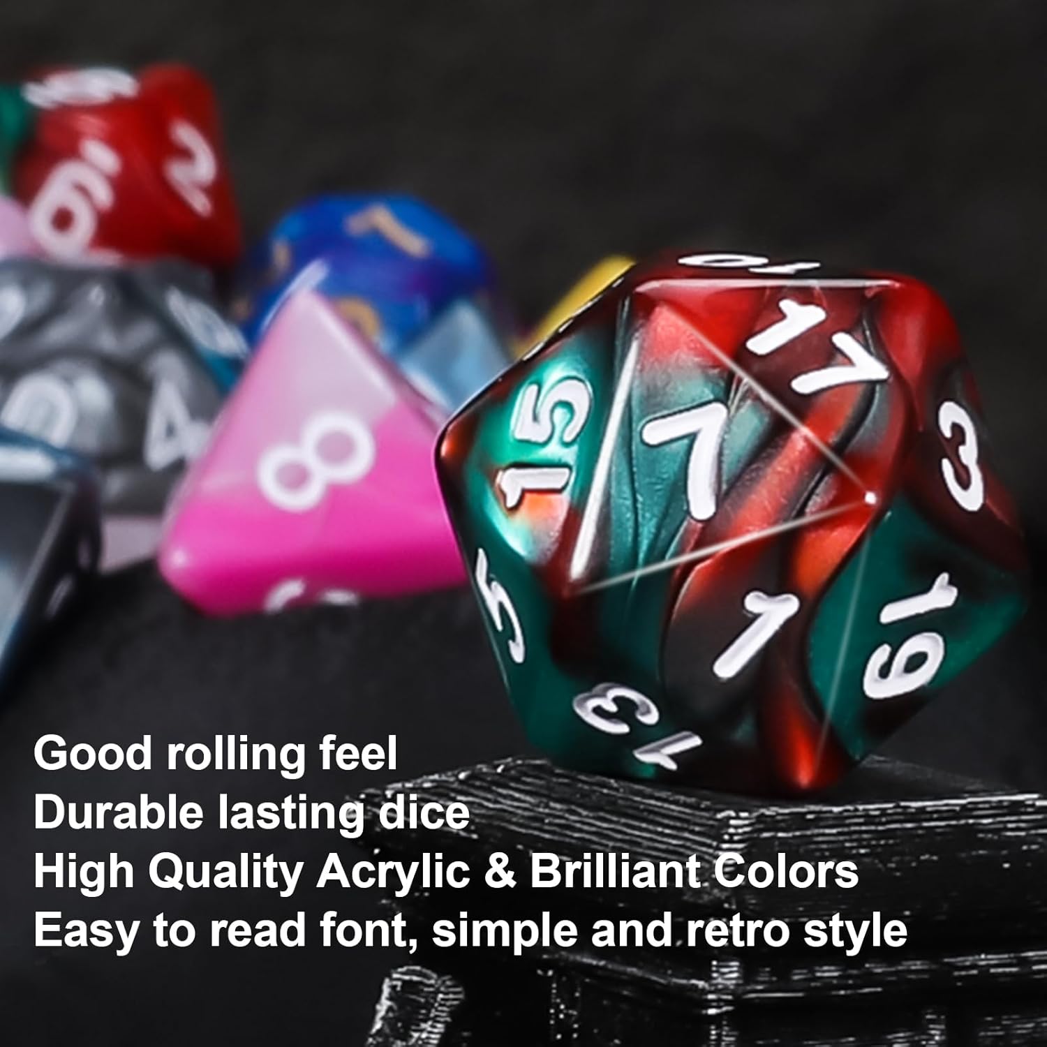 - Polyhedral Dice Set: Each 7-die set contains 1 piece d20, 1 piece d12, 2 pieces d10 (00-90 and 0-9), 1 piece d8, 1 piece d6, 1 piece d4; 42Pieces in total