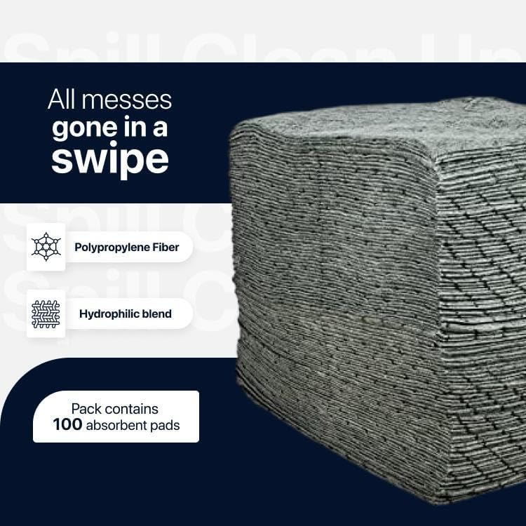 - Absorbs Oil, Water and More β These universal absorbent pads soak up oil, water, coolants, and other industrial fluids. Ideal for factories, garages, and workshops, they provide fast spill control for a cleaner, safer workspace.