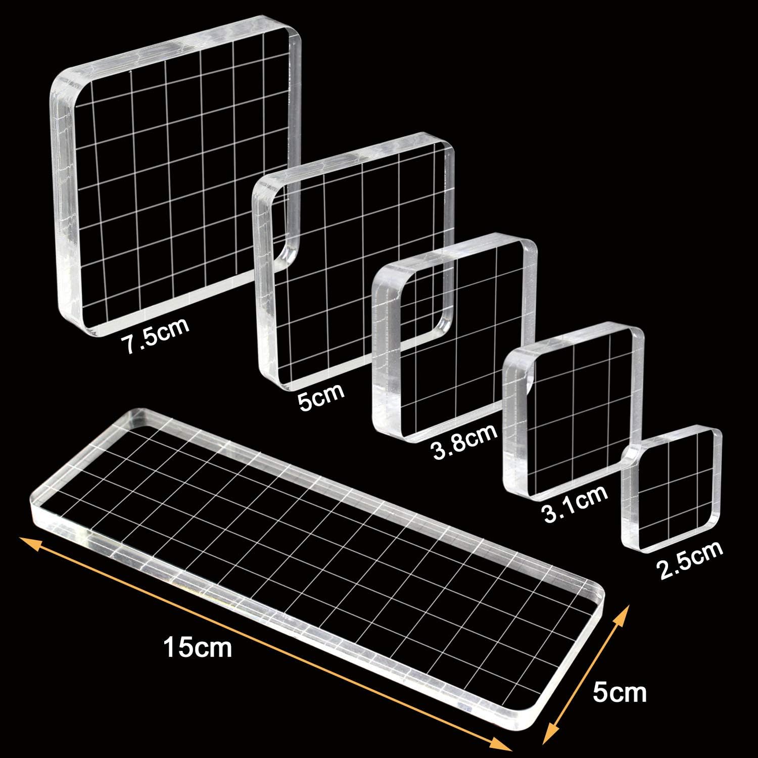 6 Pieces Stamp Blocks Acrylic Clear Stamping Blocks Tools with Grid Lines for Scrapbooking Crafts Making