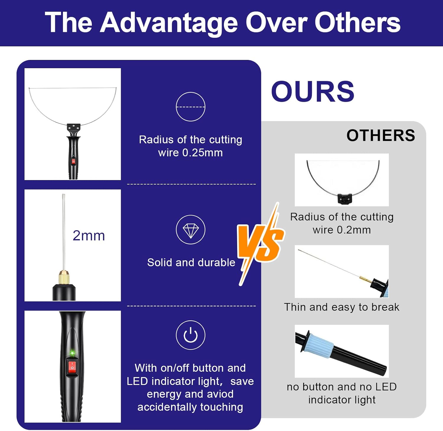 - ✔【PREMIUM QUALITY】Foam Cutter Electric Styrofoam Cutting Tool is suitable for novices. Its handle is designed to be ergonomic and its heat-resistant temperature can reach 300℃, making it friendly to both novices and professionals. The anti-slip design on both sides of the handle provides excellent control and minimizes hand fatigue. It is an indispensable tool for foam cutting and engraving.