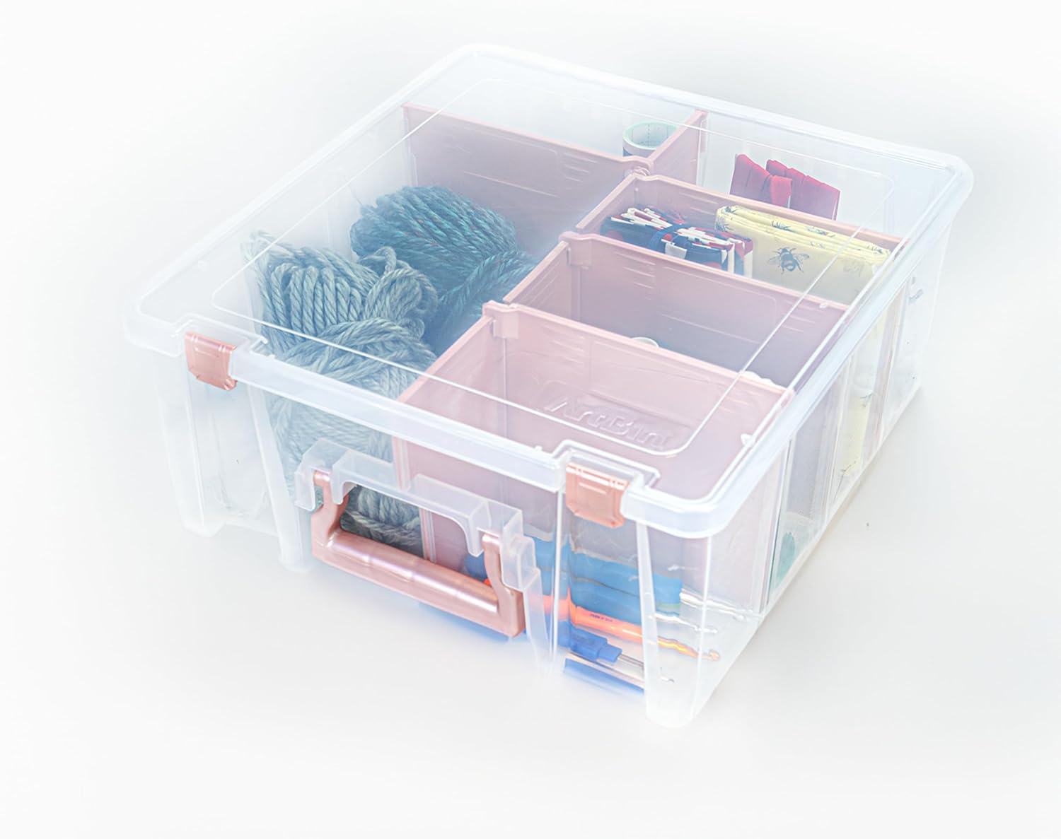 ArtBin 6990RK Super Satchel Double Deep, Portable Art & Craft Organizer with Handle, [1] Plastic Storage Case, Clear with Rose Gold Accents