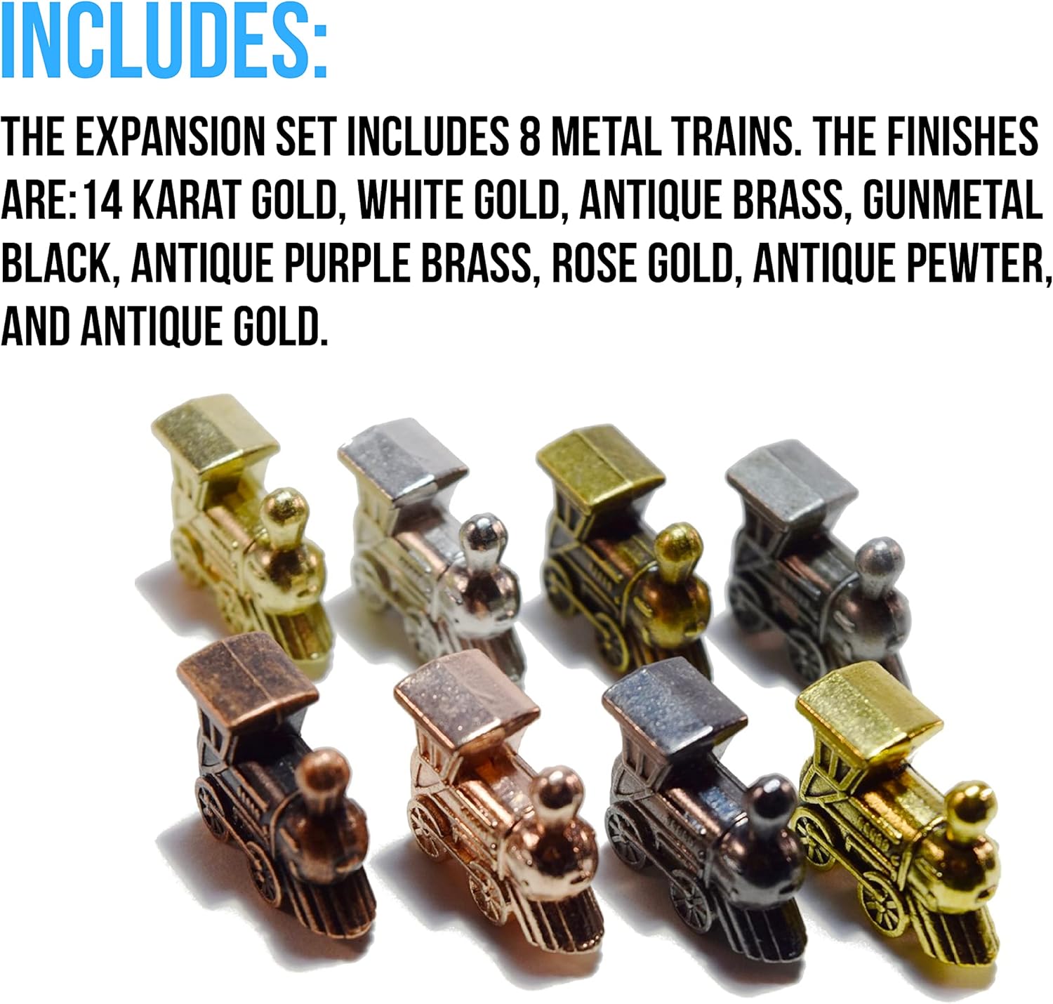 Regal Games Mexican Train Domino Expansion Set - 8 Metal Marker Trains with Unique Finishes - Replacement Wooden Hub - Scoresheet